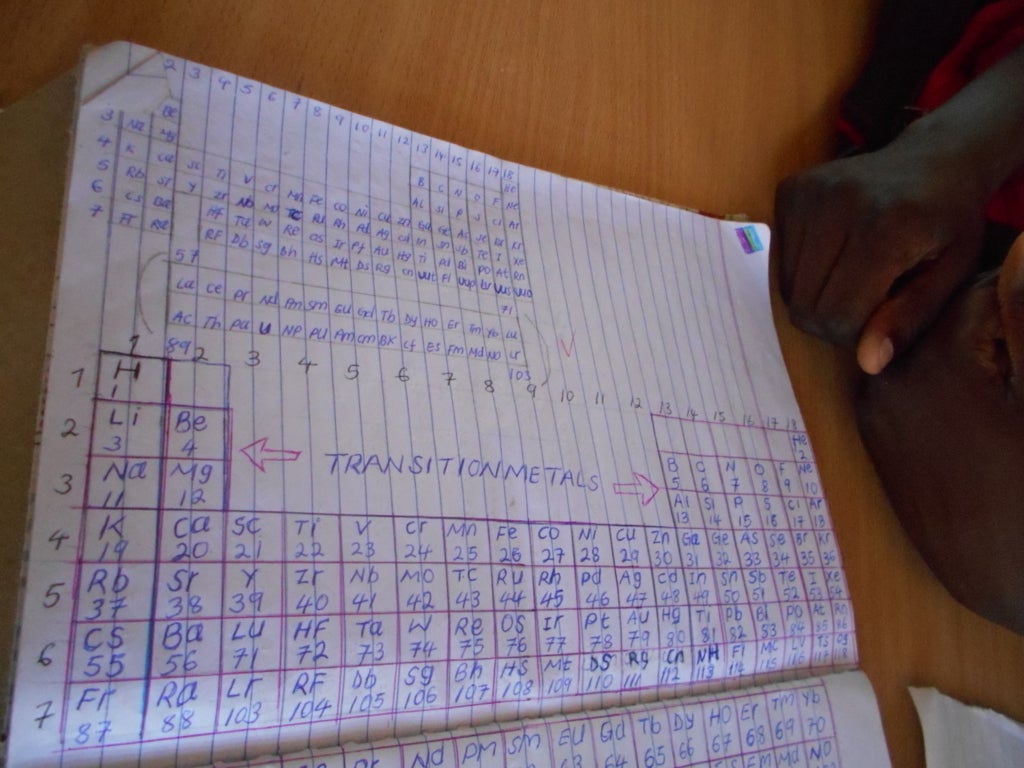 そして、生徒は私が書いた板書の周期表を自分のノートに書いていきます。