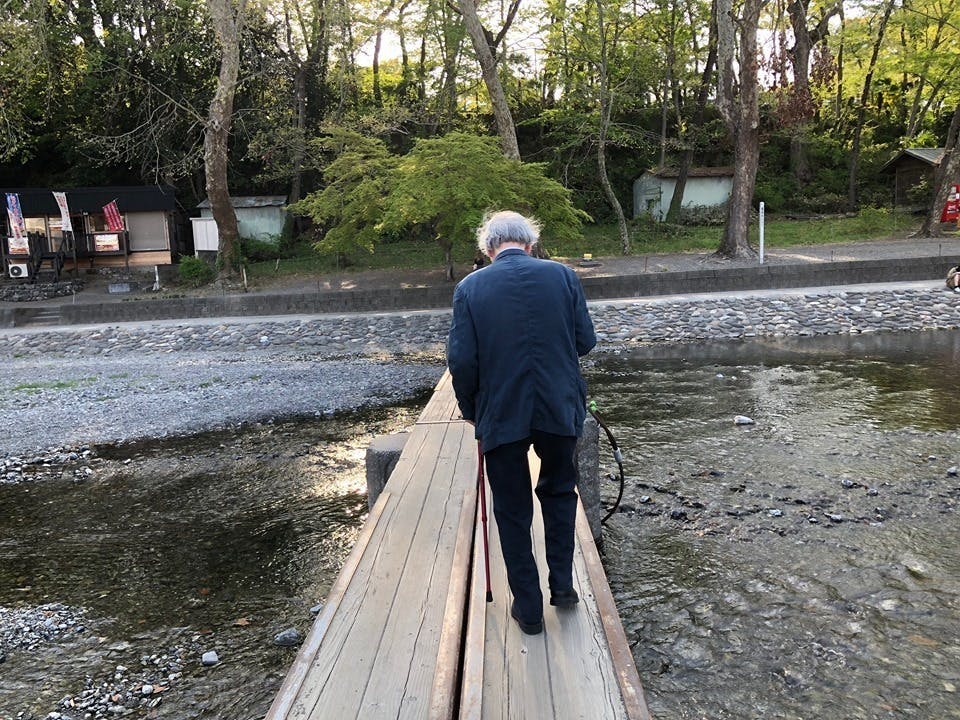 白髪頭の猫背の