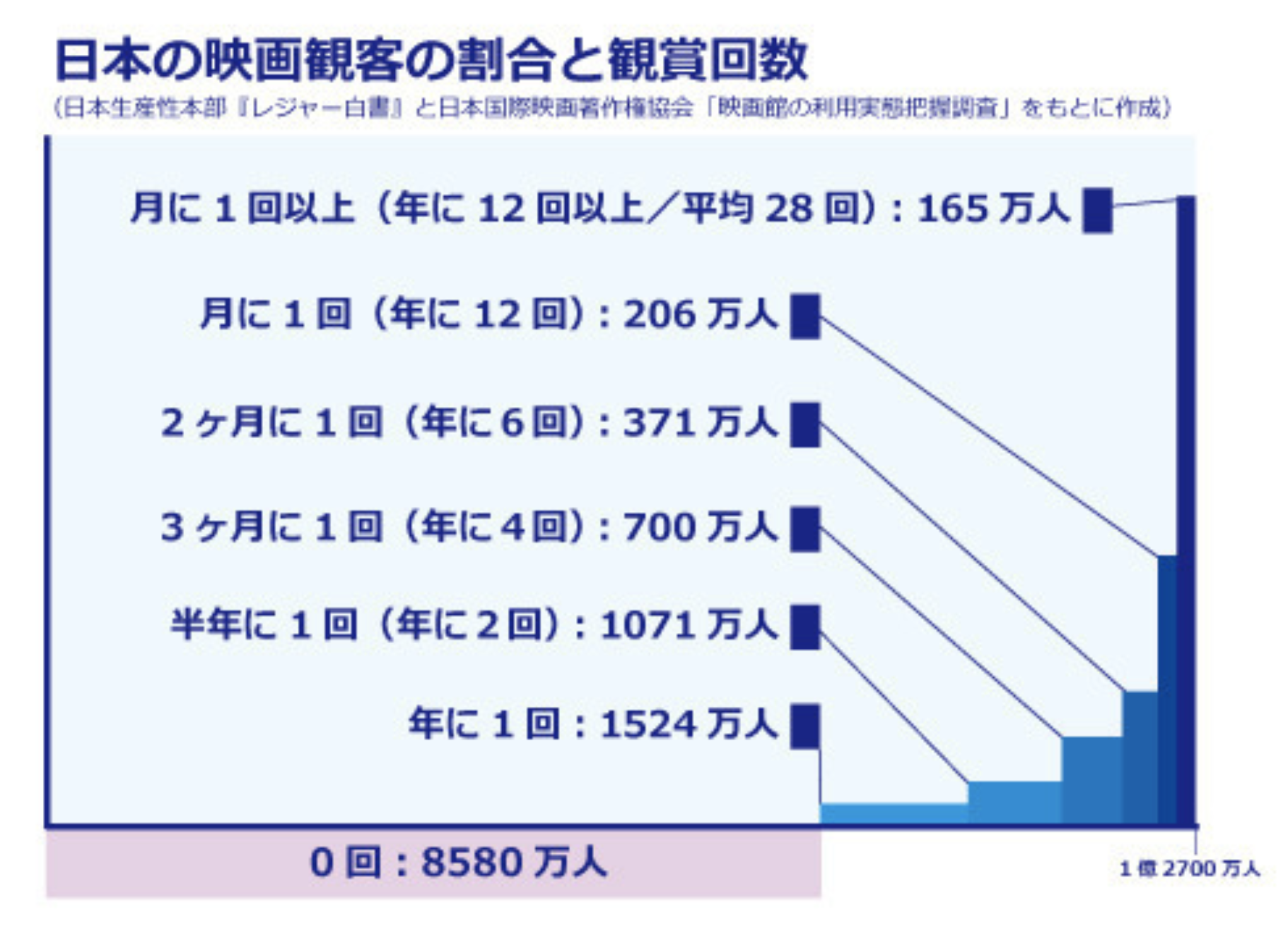 上記の画像は、日本人の映画館での年間鑑賞回数を示したグラフです。