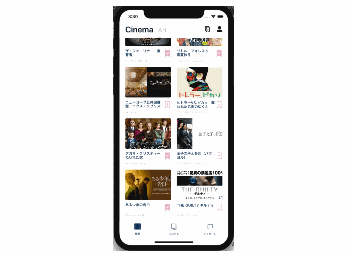 使い方は簡単で、観たい映画や行きたい展覧会などのイベントをブックマークするだけ。