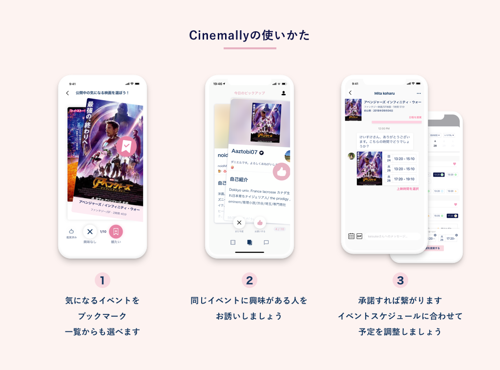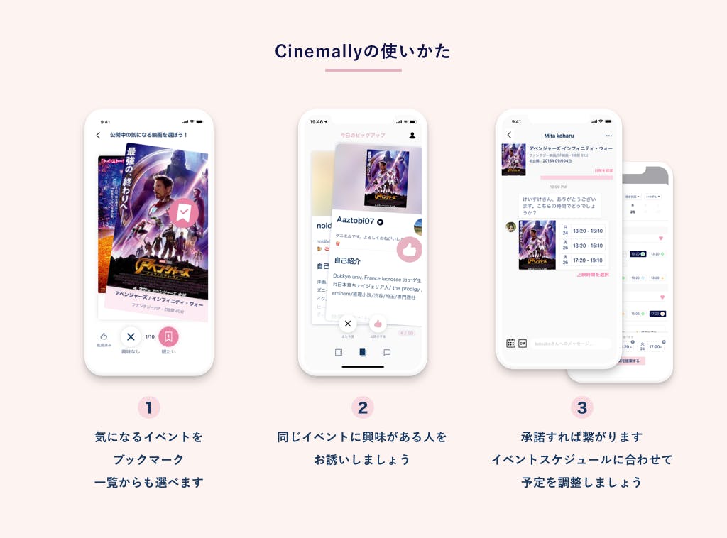 2019/07/08 21:27ユーザー登録者数、10日間で3000人突破致しました!iOSのみ、東京周辺限定、ノンプロモーションの制限の中で、お陰様で殆どが口コミで3000人まで伸ばすことが出来ました。今後も機能追加を引き続き行い、より多くのユーザーに使っていただけるようなサービスを目指します。『Cinemally』今後のアップデート予定・観に行きたい映画やイベントをSNSでシェアし、募集できる機能・マッチング可能な地域を全国へ拡大(映画カテゴリのみ先行リリース)・年齢層や利用目的の近い人が表示されるユーザーのセグメント機能・既に仲のいい人が見つかる(Twitterでの相互フォロワーを優先表示できるなど)機能・観劇・音楽フェス・スポーツ観戦などの「どうせなら誰かと行きたい」「気があう人と楽しみたい」多ジャンルなコンテンツの充実・Android版のリリースは年内を予定カフェで映画を注文できる、THE STORY CAFE 本日よりオープンTHE STORY CAFEは、カフェでのひとときにデザートを注文するように、その時の気分にあったショートフィルムを注文し鑑賞できる初の試みです。THE STORY CAFEを展開するLANDでは、通常のメニューやドリンクメニュー• デザートメニューに加えて、「シアターメニュー」をご用意しています。注文すると、LAND内にあるプロジェクターで10分前後のショートフィルムが上映されます。上映作品はショートフィルムの総合ブランド「 ShortShorts」 が選りすぐったカフェにぴったりの3作品。他のお客さまは、ジュークボックスで音楽を聴くように、誰かが注文した物語をカフェで堪能する事が出来ます。皆様のご参加お待ちしております。今後もこのような公式イベントや、企業や店舗とのコラボイベントの開催を予定しております。▼イベント日程7月8日(月) 14:00-22:007月9日(火) 14:00-22:007月10日(水) 14:00-17:007月11日(木) 14:00-22:007月12日(金) 14:00-17:007月13日(土) 別企画の為、不開催7月14日(日) 14:00-16:00(夜が特に雰囲気が良いのですが、7/8,9,11しかありません、、、)※ 7月13日(土)は別企画の為 「THE STORY CAFE」は営業いたしません。※ 7月10日(水)、7月12日(金)14:00-17:00まで、7月14日(日)は14:00-16:00の開催となります。会 場: LAND住 所: 〒150-0002 東京都渋谷区渋谷3丁目27−1参加費用: 無料参加方法: 事前申し込みは不要です。 カフェの受付で、THE STORY CAFE目的できたとお伝えください。 最適なお席へご案内致します。もっとショートフィルムを観てみたい人は、是非いつでもどこでもショートフィルムが楽しめるBrillia Short Shorts Theater Onlineへ!https://sst-online.jp/?utm_ source=thestorycafe_peatix■ ぜひ『Cinemally』を使ってご参加ください!今回のイベントは、エンタメシェアリングサービス『Cinemally(シネマリー)』主催企画となります。「THE STORY CAFE」もアプリ内に掲載されており、ブックマークすることで気の合う人とご参加いただくことができます。今回のイベントを機に、ぜひエンタメシェアリングを体験していただければと思います。(もちろん、お一人様・友人・恋人などとの来場も可能です。)https://apple.co/2Fm2UKR ■ SHORTSHORTSが提供する世界のショートフィルムを楽しめるオンライン映画館Brillia Short Shorts Theater Online「暮らしにシネマチックなひと時を」「ブリリア ショートショートシアター オンライン」は、毎日を忙しく生きる社会人の皆さんに、映画のあるライフスタイルをお届けします。今年21年目を迎えた国際短編映画祭「ショートショート フィルムフェスティバル & アジア」に集まったショートフィルムの中から、SHORTSHORTSが厳選したショートフィルムを、オンライン上で視聴することができます。短い時間ではありますが、人間の優しさや強さ、豊かな人生のヒントを教えてくれる、素晴らしい映画を皆さんの日常にお届けします。公式サイト:https://sst-online.jp/ もっと見る