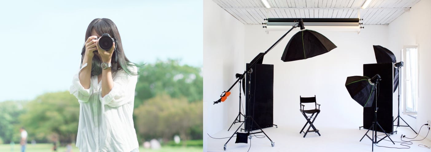 生徒さんお一人ずつにカメラをお渡しし、写真がキレイに撮れるポイント、構図、レフ板、ライトの使い方を学びます