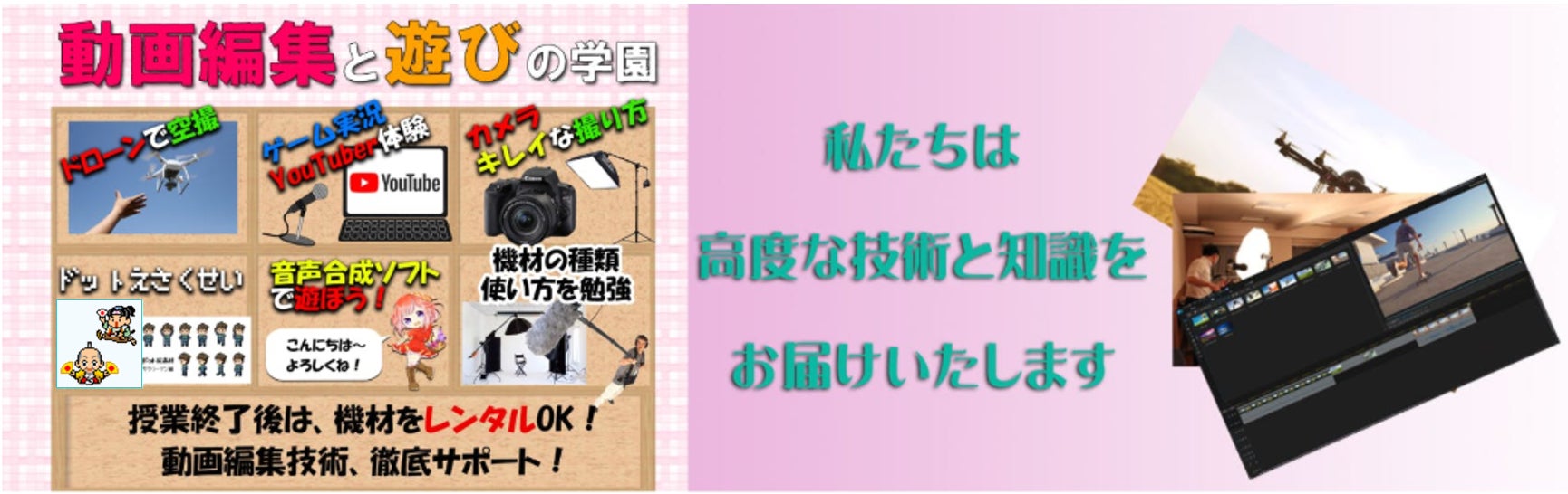 仕事ばかりで毎日大変なサラリーマンの方、小さいお子様をお持ちの方、主婦の方、自宅で副業を始めたい方、いろんな方に動画編集の楽しさに触れて頂き、ドローンや360°カメラといった最先端技術で一緒に遊びたい! 仕事が辛くても、ここには私の居場所がある。そんなつながりを持って、毎日元気に生きてほしい!