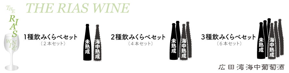 今回の熟成対象の各3種類のTHE RIAS WINEの1種類飲みくらべセット、2種飲みくらべセット、3種の飲みくらべセットを用意しております。
