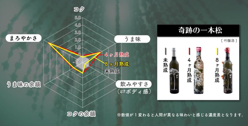 ・海中熟成の期間が長くなると濃醇(飲みやすさの減少=ボディ感の強化+うま味増加)になる。