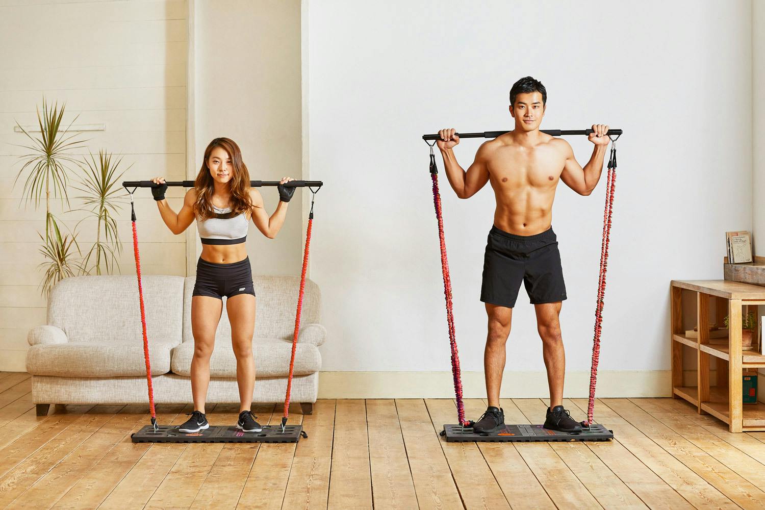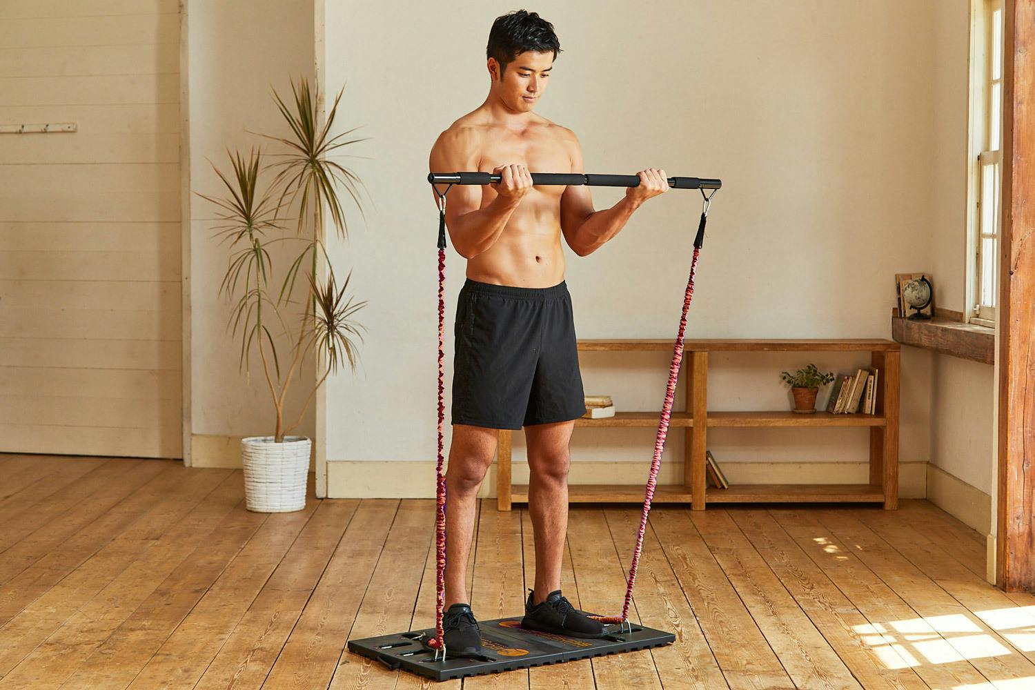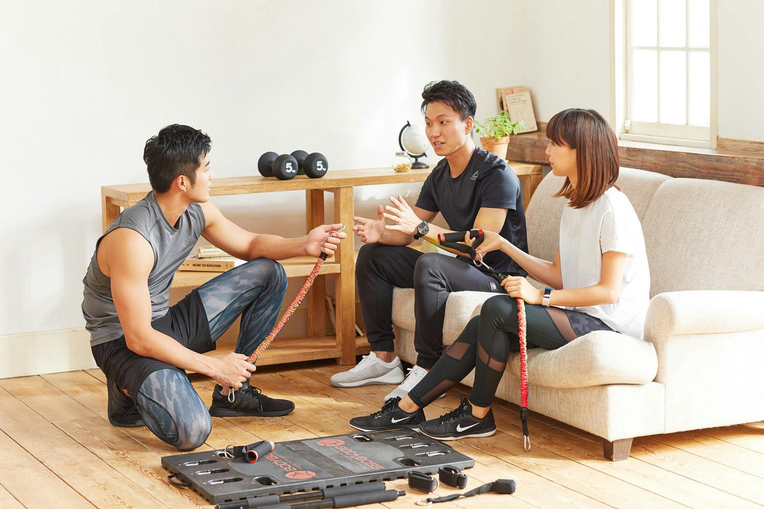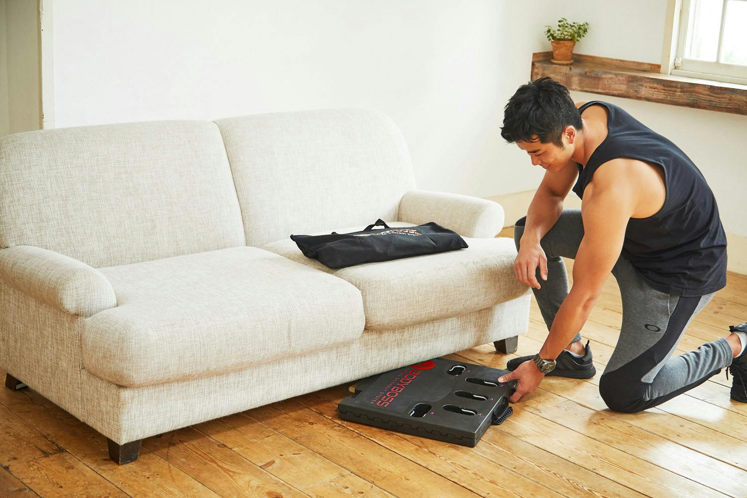 トレーナーに教えてもらったメニューはBODYBOSSがあれば自宅でも実践可能。ジムに行けなかった日でも自宅でワークアウト!
