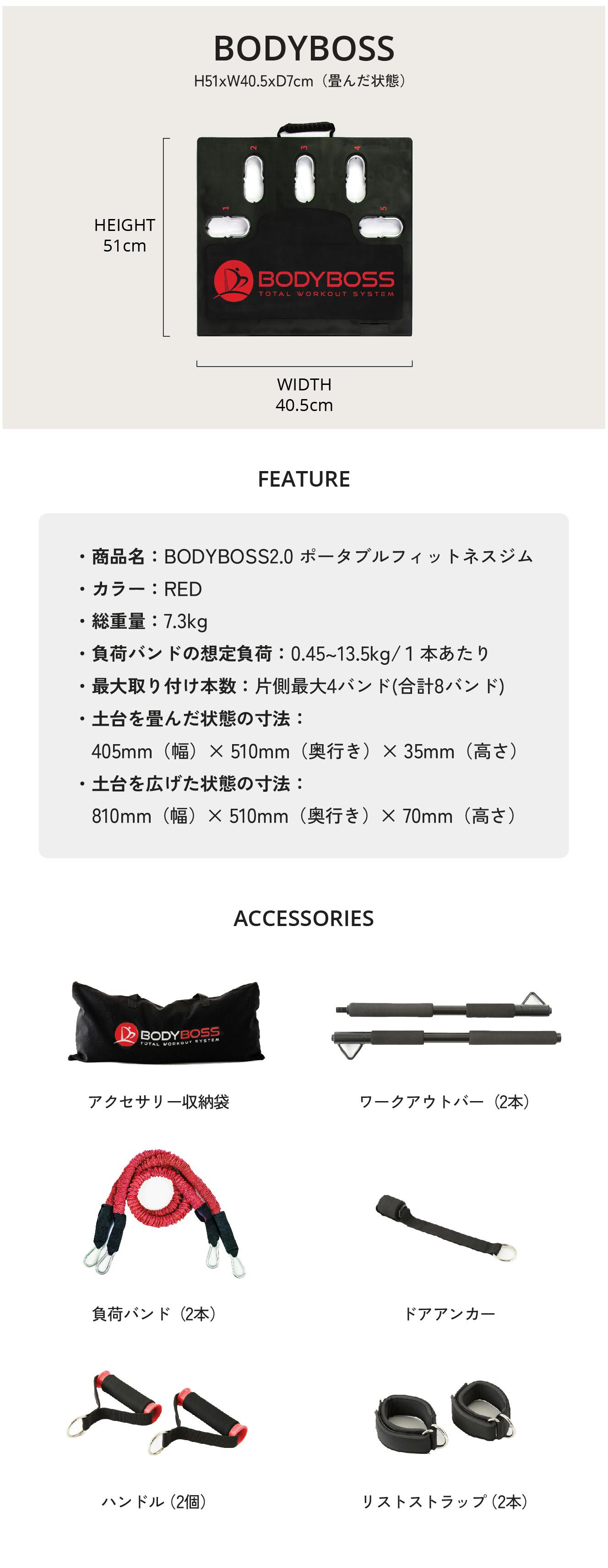 BODYBOSS2.0とはジムで見る大型の機器やマシンと同等の機能を持った製品。