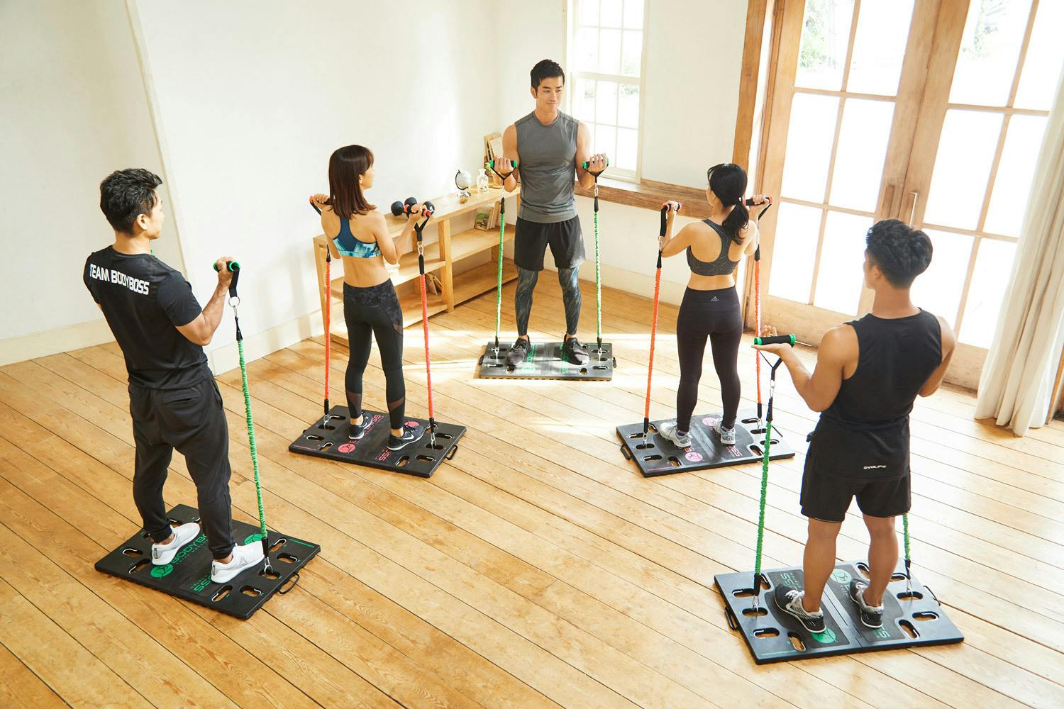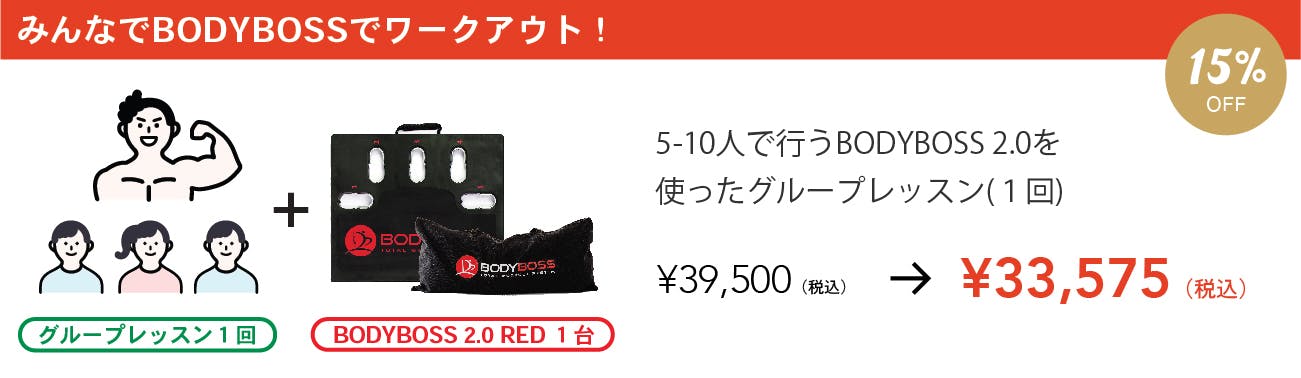 BODYBOSSの使用方法の説明を含めたグループレッスンを東京都渋谷区のスタジオにて開催します。BODYBOSS仲間と一緒に汗を流しましょう!