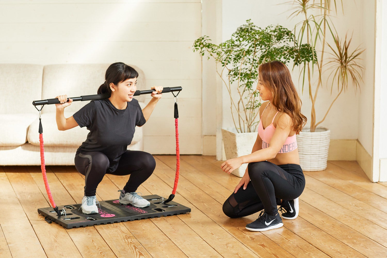 トレーナーに教えてもらったメニューはBODYBOSSがあれば自宅でも実践可能。ジムに行けなかった日でも自宅でワークアウト!
