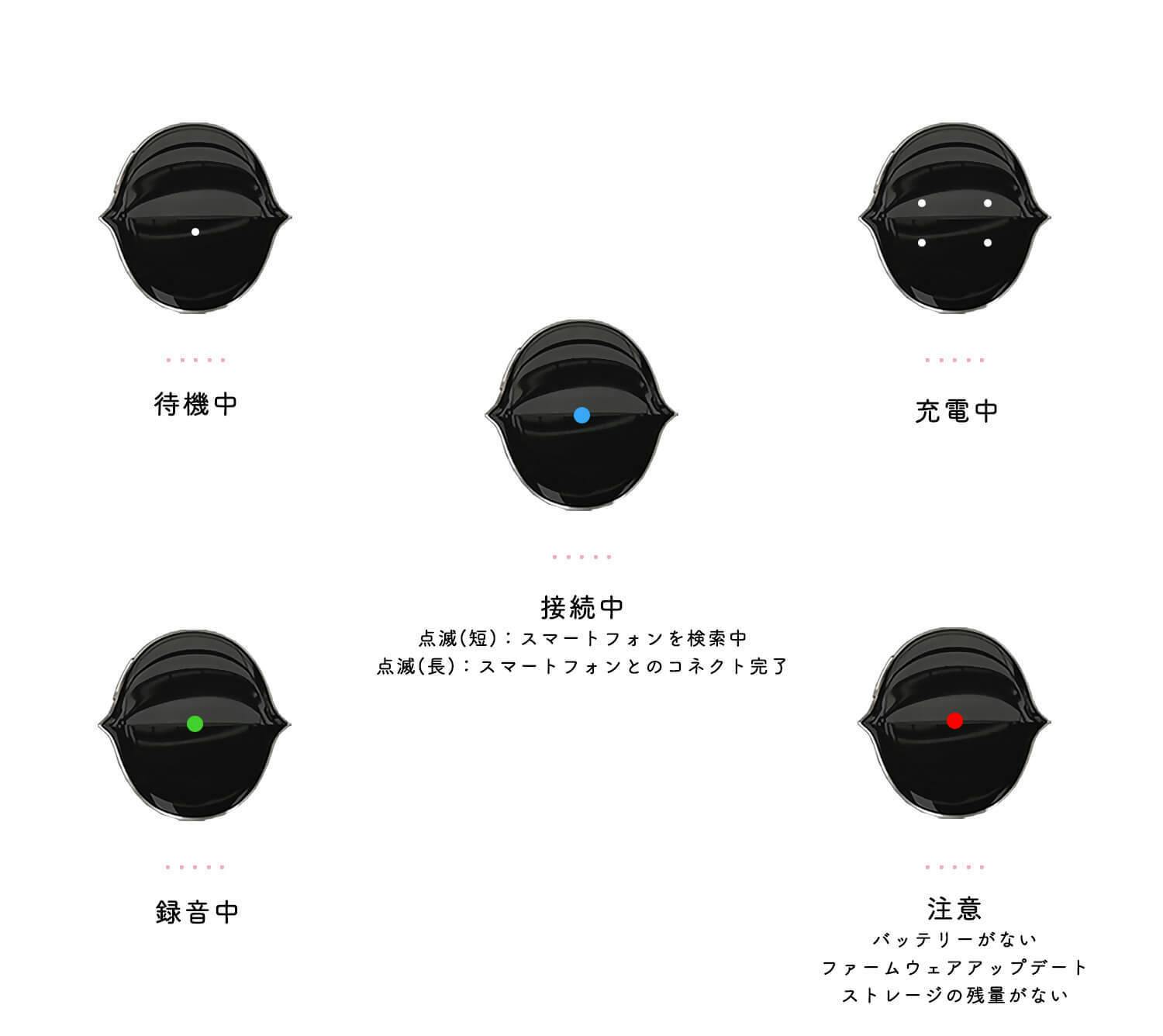白・緑・赤・青のLEDが内蔵され、表面を見るだけですぐに状態を把握することができます。