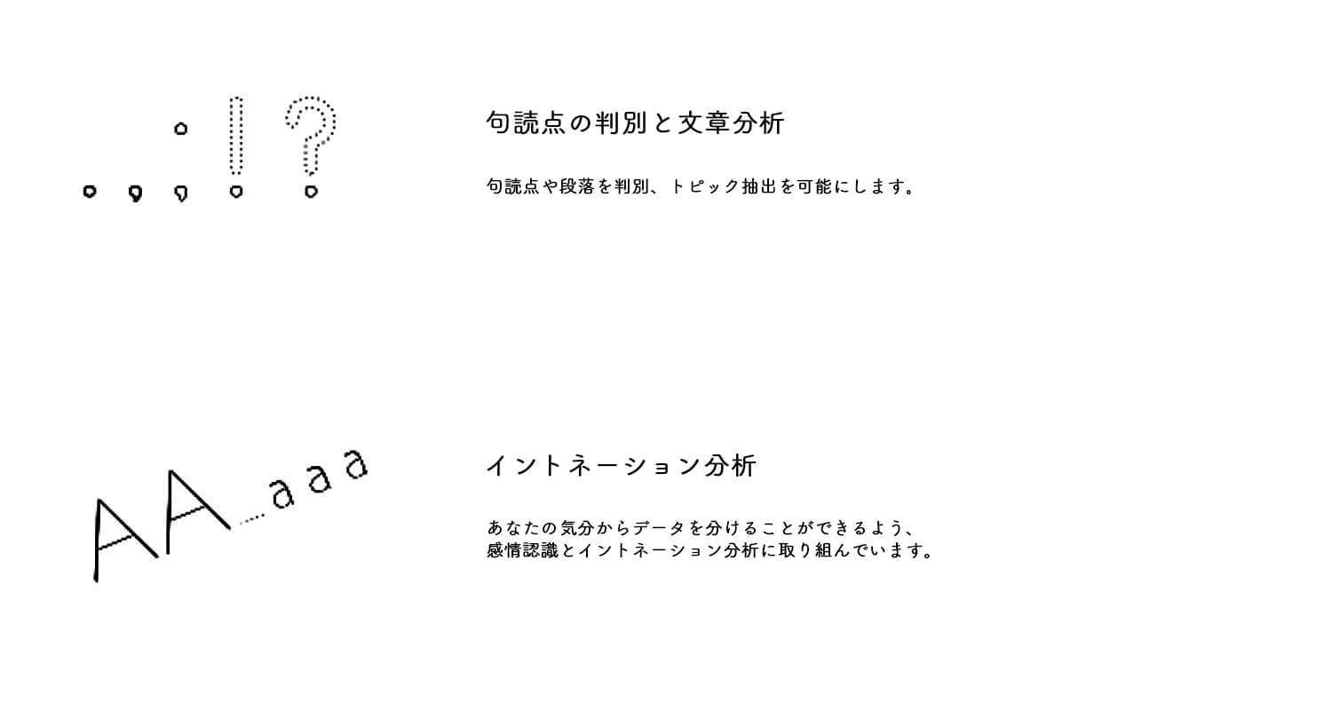 私たちは音声分析、テキスト抽出、音声分析による機械学習を開発しています。