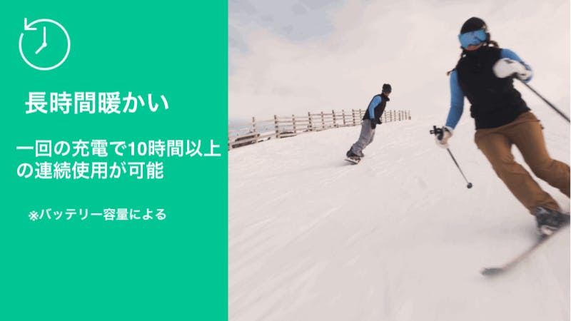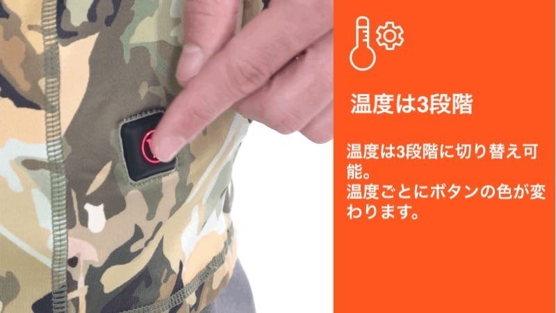 ボタンを押すと、背中上部に配置されたヒーターがわずか10秒で暖かくなります。新しく改良されたヒーターエレメントは、長年の研究、消費者フィードバック、製造経験をもとに、体の真まで暖めるように設計されています。