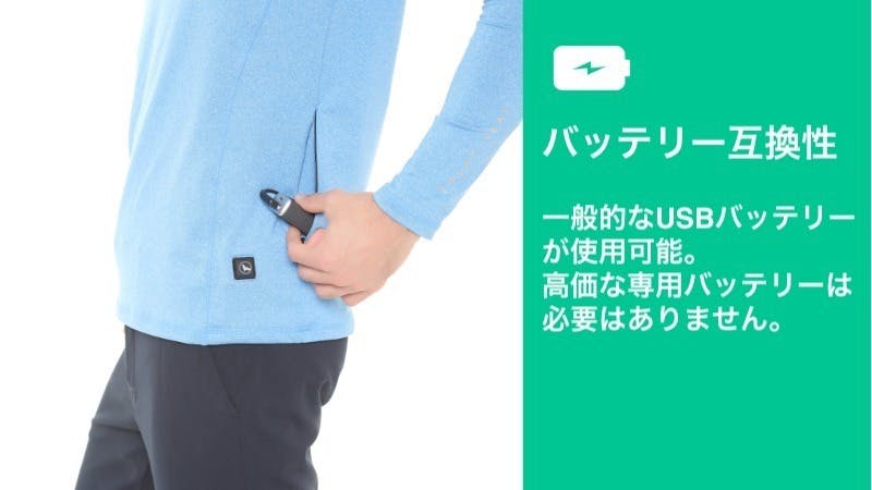 標準的なUSBバッテリー(別売)が使用できます。自分のニーズに合ったバッテリーを購入したり、手持ちのUSBバッテリーを使うこともできます。