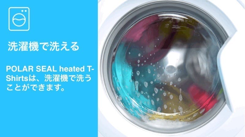 「POLAR SEAL Heated Tops」は、洗濯機で簡単に洗うことができるので、従来の衣類と同様、日常的にお使いいだけます。