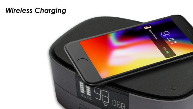 Qi規格の9W急速充電に対応しており、対応端末であれば本体上部に置くだけで充電が可能です。