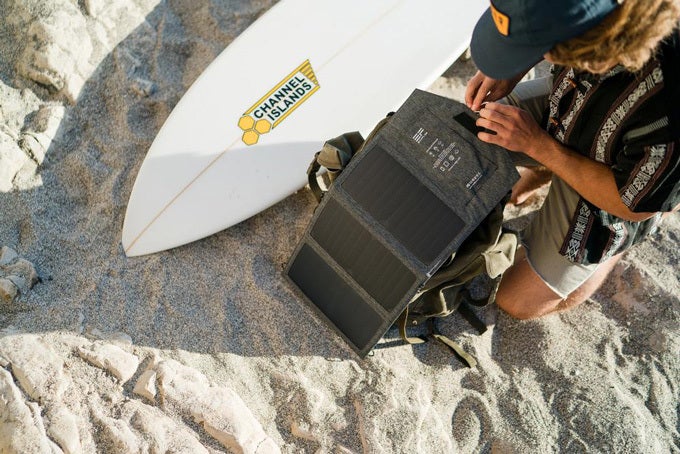 別売りの専用ソーラーパネル(21W)を利用すれば、屋外での充電も可能。これにより電池切れのリスクが大きく下がるため、写真やドローンの撮影、キャンプなどのアウトドア利用の幅が大きく広がります。