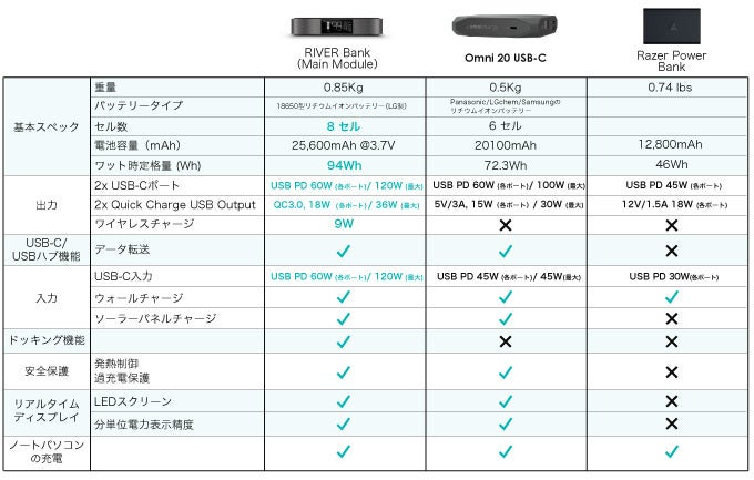 またRIVER Bankは単純な容量だけのバッテリーではありません。