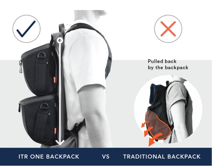ITR ONEバックパック(左) VS 右が従来のバックパック(右)