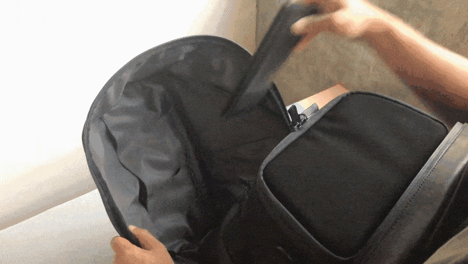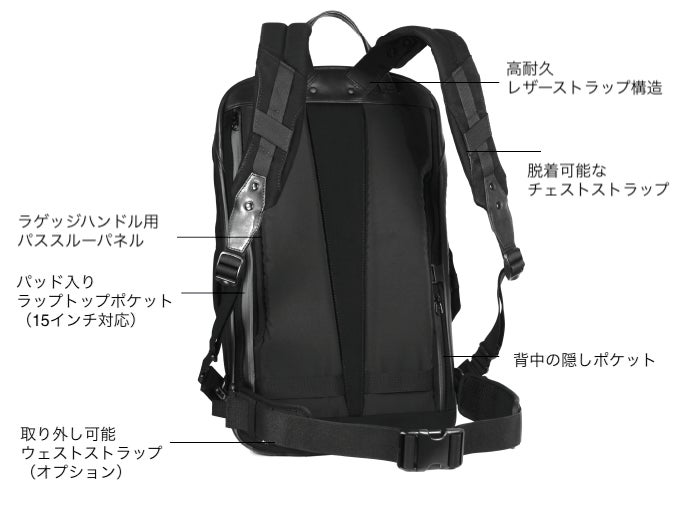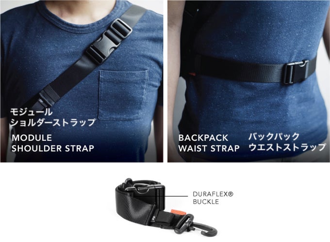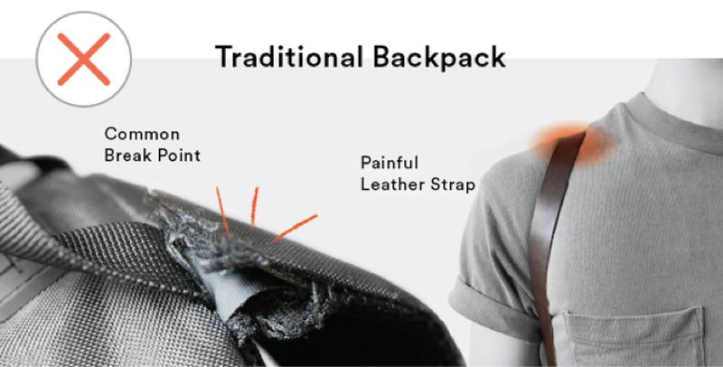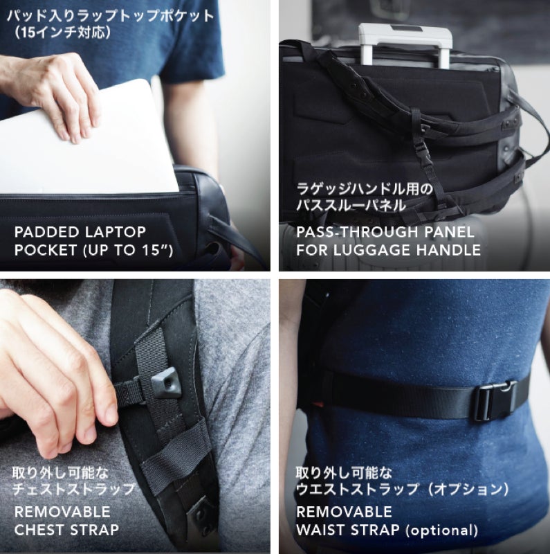 ※従来のバックパックのように、ストラップとバックパックのつなぎ目が壊れたり、ストラップが肩に食い込んで痛むということはありません。