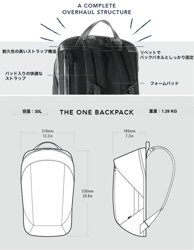 ITR One バックパックは、普段使いのバックパックを完全に置き換えます。コンパートメントを組み変えることで、生活のあらゆるニーズにぴったりと対応する先進モジュラーシステムを採用しています。ITR One バックパックは、組み方次第で、カメラバッグにも、ワーク&ジムバッグにも、スーツキャリーバッグにも、トラベルバッグにも、そして、テックバッグにもなります。あなたの生活にぴったりと寄り添う本当の意味でのデイリーバックパックです。
