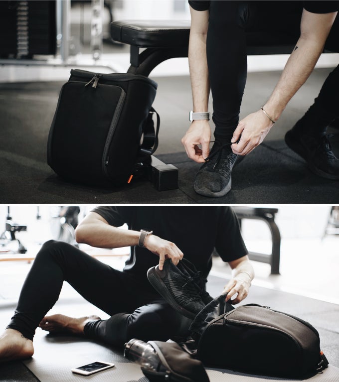 シューズを含むジム用具を入れられるスポーツモジュールと、小物が入るポーチモジュールのセットです。