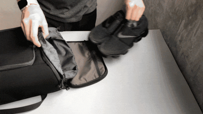 スポーツモジュールには、取り外して選択が可能な、シューズバッグが内蔵されています。メインコンパートメントにジムウェアを入れて、シューズと分けて収納できます。仕事とジムのグッズを収納するのにぴったりのモジュールです。