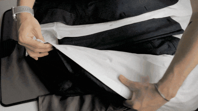 スリングモジュールは、ノートPC、iPadなど日常的なアイテムを収納するようにデザインされています。すべての要素が、スマートに収納し、すばやく取り出せるように再定義されています。必要に応じて、スリングモジュールをバックパックから取り外して単体で持ち運ぶことができます。