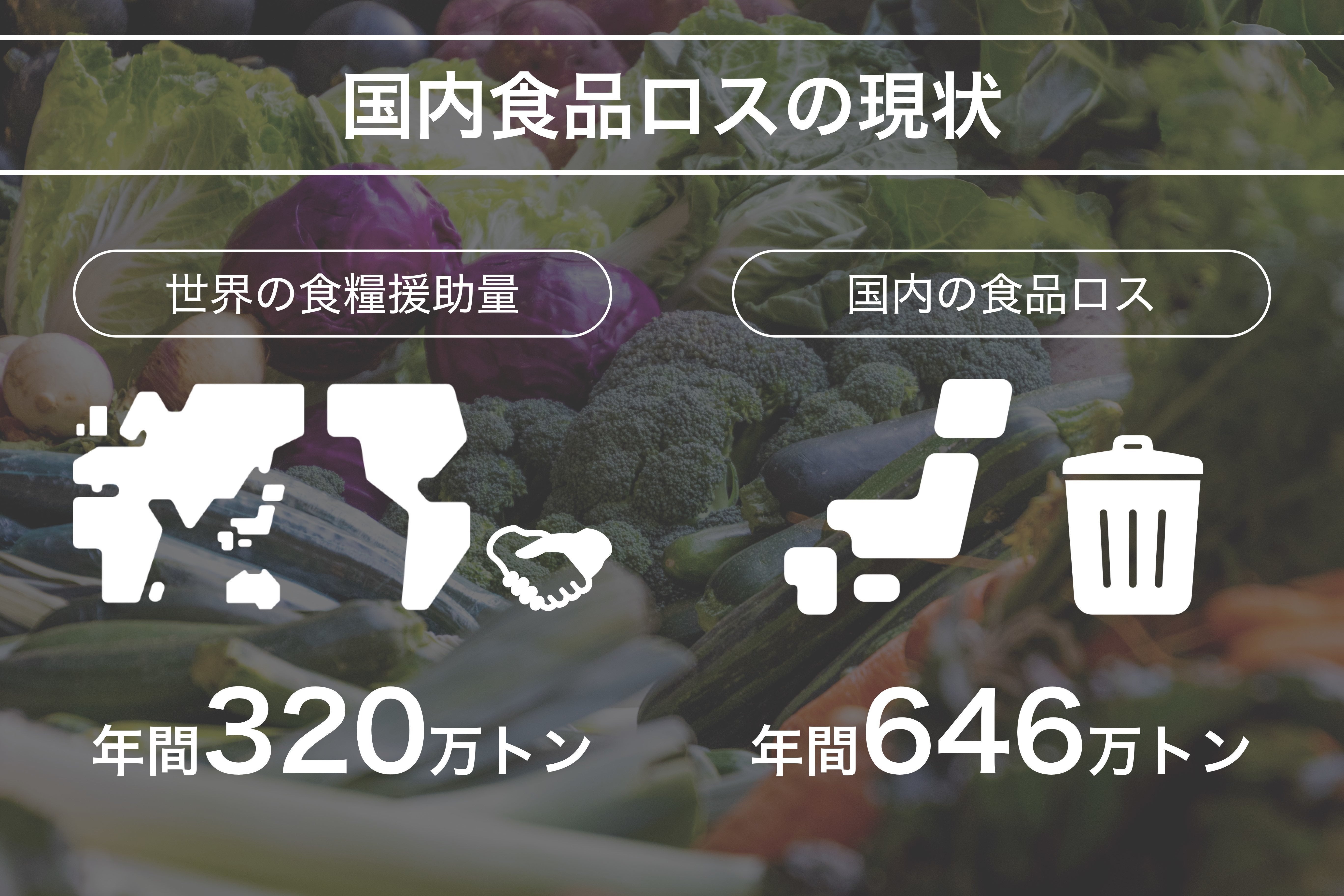 私達が解決に取り組む社会課題は食品ロス(食べられるのに捨てられてしまう食品)です。