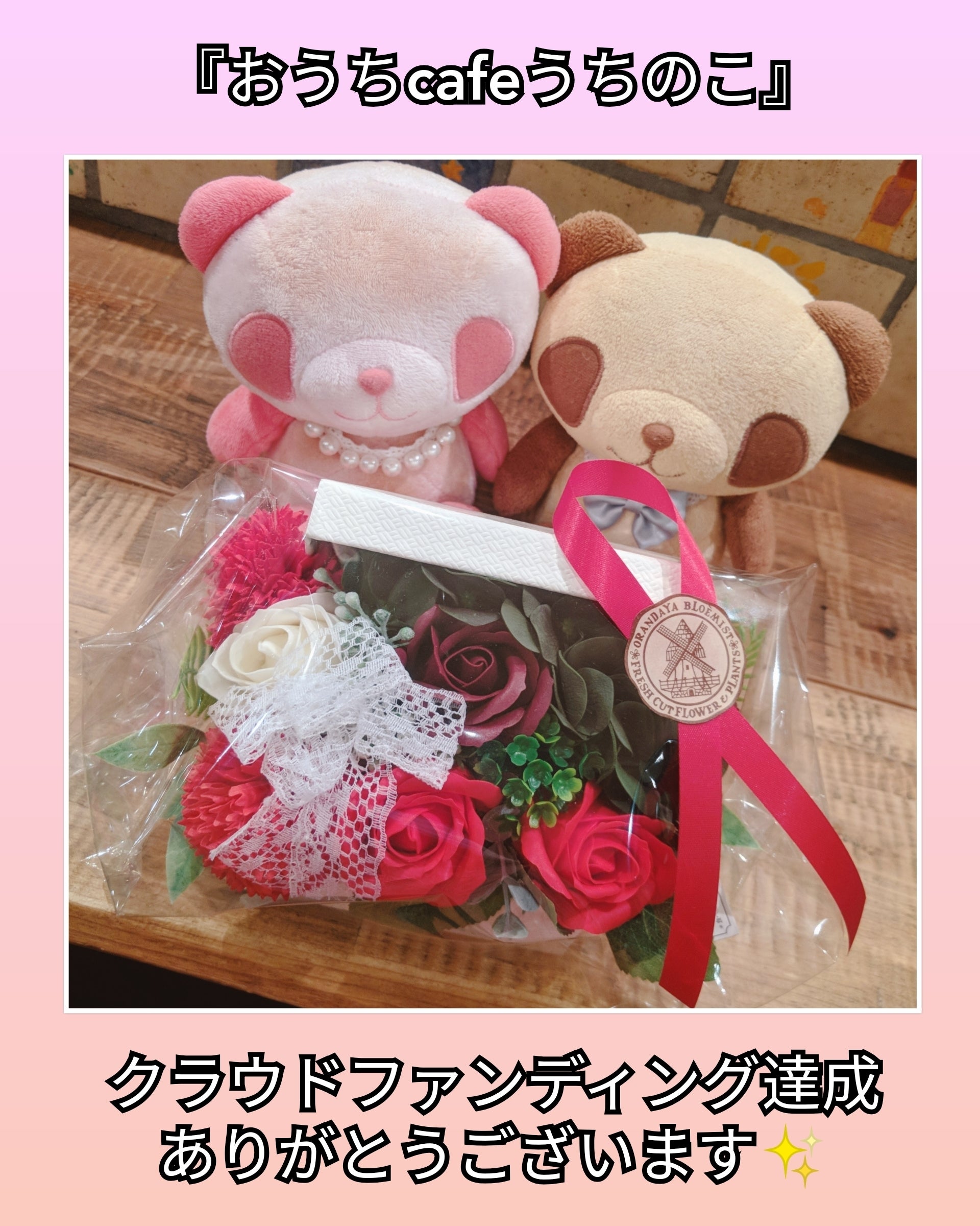こんばんは、プロジェクトオーナーのmarikaです。本プロジェクトは無事に成功で期限を迎える事が出来ました!ありがとうございますm(_ _*)mオープニングパーティーについてや、各リターンについては4/8(月)に各パトロン様にご連絡予定です。クラウドファンディングでの支援期間は終了しましたが、『おうちcafeうちのこ』はこれから本格始動となりますので引き続き温かい応援よろしくお願い致します(*´∇`*)