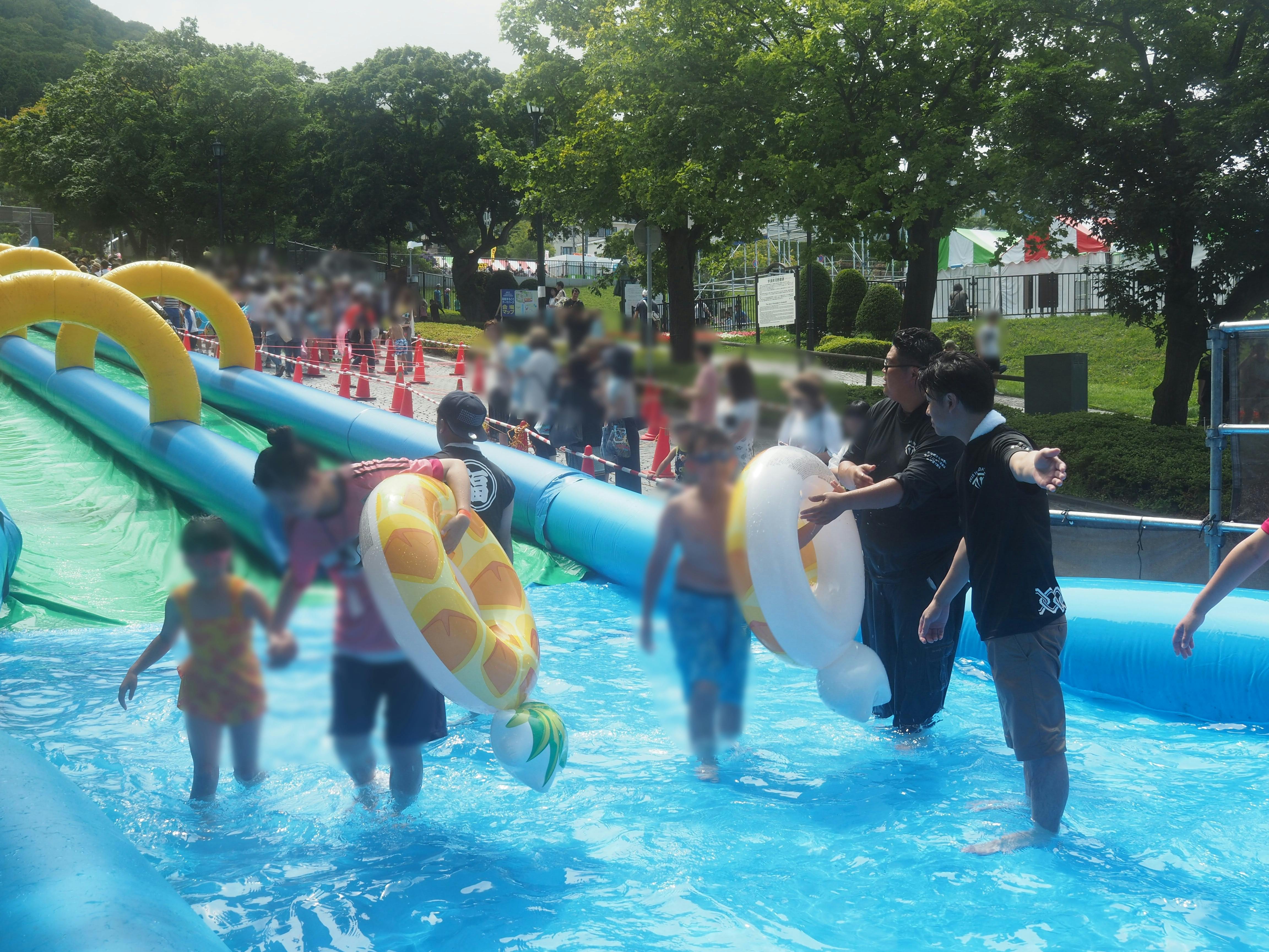 夏休みがはじまった時期ということもあり、多くの子どもたちにもこのウォータースライダーを滑ってもらい、「楽しかった!!」「また滑りたい!!」という多くの声を頂きました。