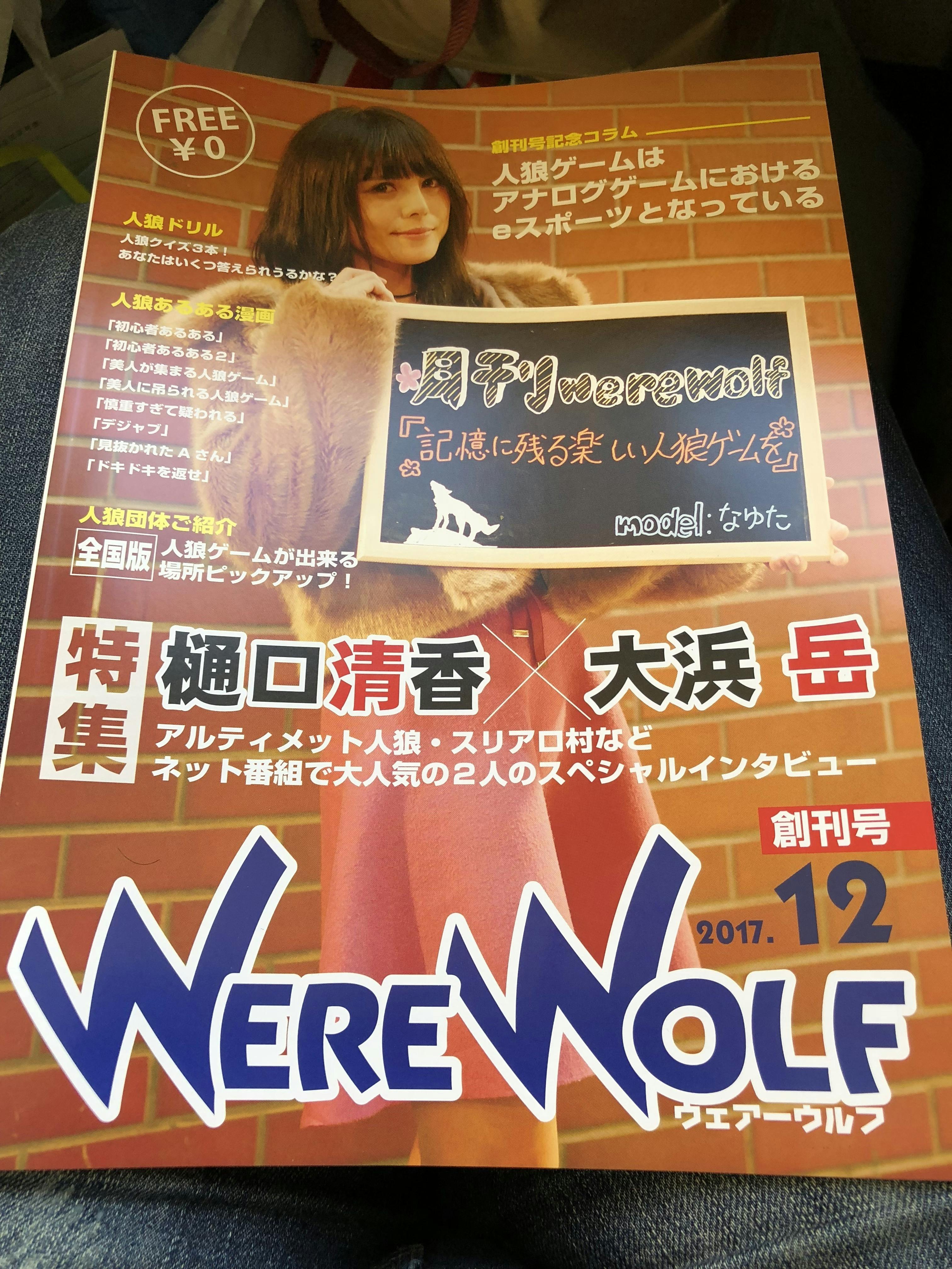 「月刊werewolf」という人狼ゲーム専門の月刊誌を2017年12月から2018年7月まで私費を投じて発行していました。