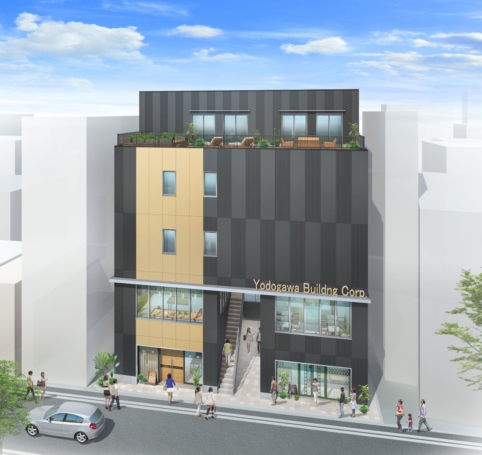 現在は建築中(5月末完成予定)ですが完成するとこのような外観の建物になります。