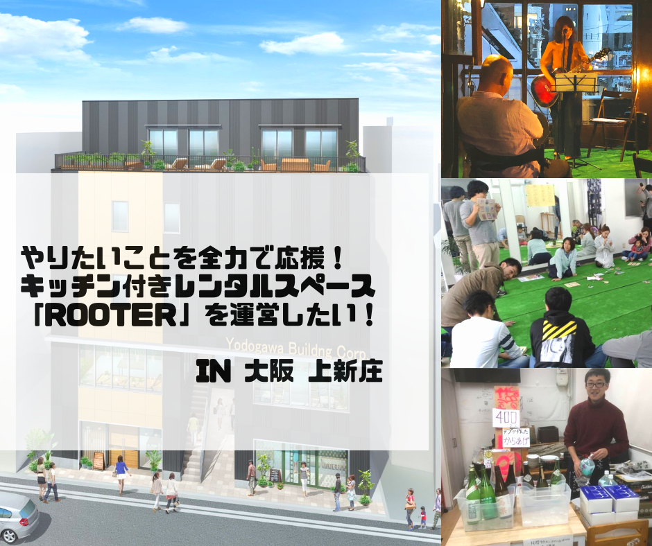 皆さん初めまして!大阪のキッチン付きレンタルスペースを運営する予定の「Rooter」と申します!