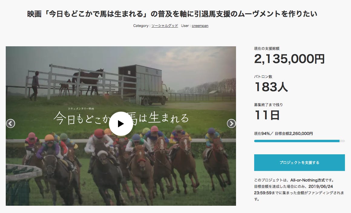 現在、クラウドファンディング開始から29日目で183人の方々から 2,135,000円の