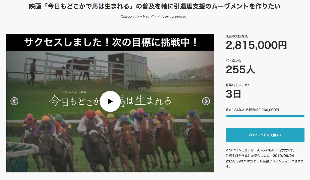 現在、クラウドファンディング開始から37日目で255人の方々から 2,815,000円の
