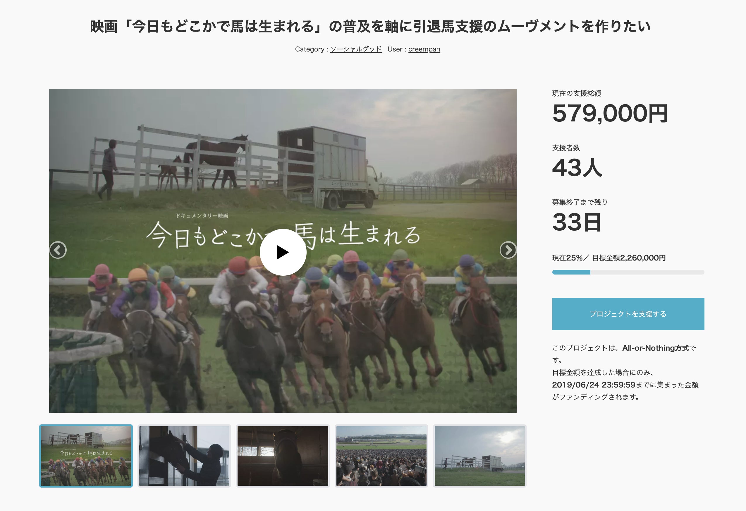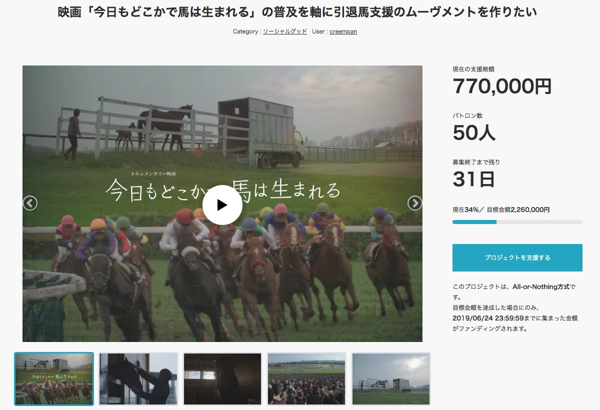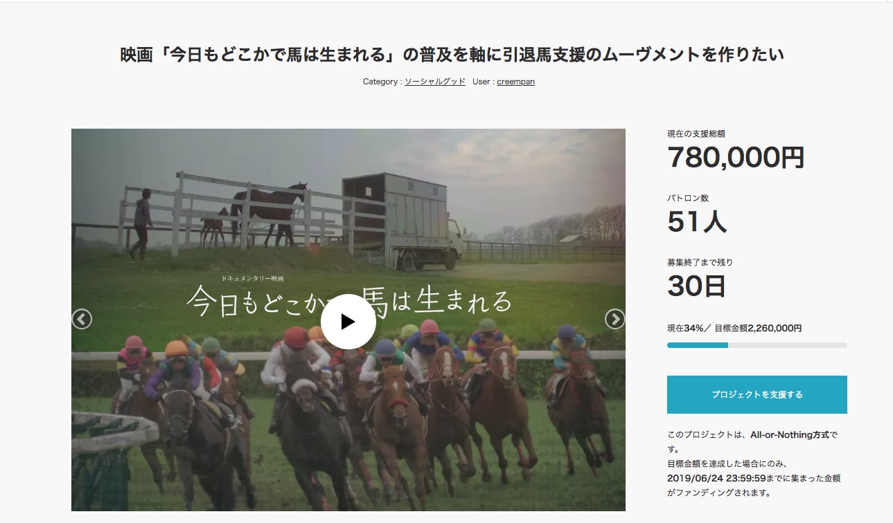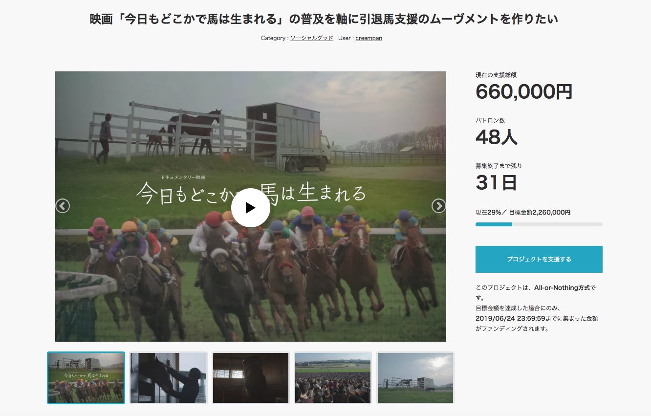 いつもありがとうございます。Creem Pan 平本です。本日はご支援はありませんでした。それでもご協力していただいた方々ありがとうございます。本日は私たちCreem Panについて書きたいと思います。以前の活動報告では、クラウドファンディングをスタートしたところまででした。クラウドファンディングは初日から大盛況で、私たちが思っていた以上の支援が集まり、それは2日目以降も続いていきます。映画はクラウドファンディングが達成すれば制作することができるので最初のうちは当然喜びと感謝の気持ちが強かったです。しかし、次第にそれとはまた違った責任感、もう少し言えばプレッシャーも感じるようになっていったのです。全くの無名な私たちに支援してくださっている方々のことを思うとこれは中途半端な作品にはできない、観てくれる人たちにとって有意義なものにしなければならない!という気持ちが増していきました。それと同時に、日々多くの支援者の方々からの応援のメッセージをいただいたことは、私たちにとって非常に価値のある体験になり、制作を行ううえでの力となりました。こうして、およそ1ヶ月の期間でクラウドファンディングは成功。170万円だった目標金額を大幅に超える2,697,000円もの支援が集まりました。こうしてはれて、Creem Panと支援者のみなさまによる映画の制作を進めることとなったのです。続くーーーーーーーーーーーーーーーーーーーー次回からは映画の制作について書いていこうと思っております。これからも、どうかCreem Panをよろしくお願いいたします。Creem Pan 平本