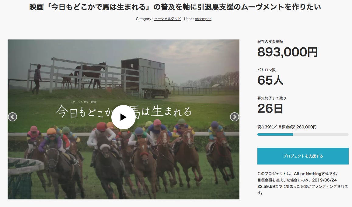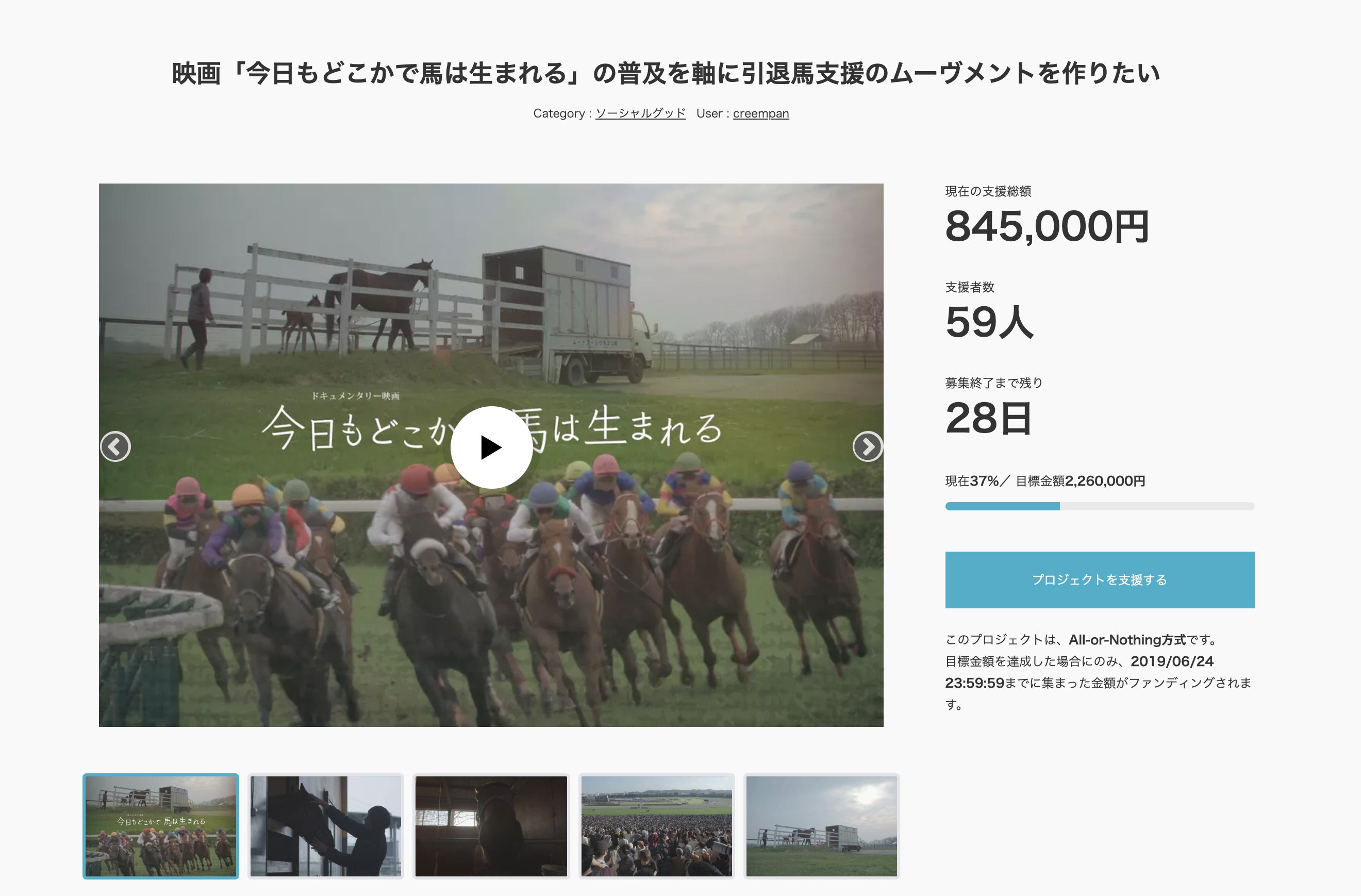 こんばんは。『今日もどこかで馬は生まれる』監督の平林です。本日は6名の方に84,000円のご支援をいただきました。心より感謝申し上げます。現在クラウドファンディングが始まってから16日目、982,000円まで来ました。残り、25日で1,278,000円のご支援で達成となります!* * *クラウドファンディング本ページでも述べております、「作るの先へ」について、想いを綴っていければと思っています。どうか最後までお付き合い下さい。② 思いを「集める」。映画を見た方の感想を集めてアーカイブ化し、WEBサイトで一般公開します。▽想定コンテンツ・映画視聴者カウンター(上映イベント来場者数・DVD販売数の合計値を適時更新)・レビューコメント(視聴者投稿型の視聴感想集約)・インフォメーション(上映イベントなどを始め、映画についてのお知らせを適時更新)・イントロダクション(概要紹介)・ストーリー(全11シーンの解説)・キャスト&スタッフ(出演者と制作スタッフの紹介)・座談会記録(Creem Pan主催の引退馬課題解決座談会記録集)・DVD(DVD購入フォーム)Creem Pan がやらなければいけないことは、① 映画を「広める。」次に、② 思いを「集める。」が挙げられます。引退馬の課題における「今」を記録した本作を多くの方に観て頂くことで、僭越ながらこの課題についての基礎知識の提供と、興味関心の向上を目指したいと考えています。そして、多くの方に観てもらった次に行うべきことは、「思いの集約」であると考えています。これは、SNS上で書かれた、本作の感想を、Creem Pan メンバー閲覧用にLINEアルバム上で集めたものの、スクリーンショットになります。これ以外にも、メールやメッセージ、或いは直筆のお手紙など、様々な手法で感想が届けられております。無論、僕はその全てに目を通しているわけですが、そういった作業を通じて思ったことがありました。それは・・・「これはアーカイブとして一般公開するべきだ」という思いです。『今日もどこかで馬は生まれる』という作品を通じて生まれた、共通体験を経て、何を感じ何を思ったのか、それは人の数だけ答えがあります。それを読む事で、まさに「世の中の声」を感じることが出来る気がしてなりません。映画の特設サイトを作り、そこで「世の中の声」を集める。そして誰でもそれを閲覧できるようにすると共に、これを資料として、JRAの検討委員会様や、引退馬協会様など、前線で引退馬支援を行っている諸団体様に提出したいと考えております。僕は、こうすることで間違いなく、この引退馬の課題解決の一助になれるのではないかと考えています。こうした目論見の元に、映画「今日もどこかで馬は生まれる」の普及を軸に引退支援のムーヴメントを作りたいというチャレンジプロジェクトを立ち上げた次第です。* * *本日は以上です。次回は「③ 思いを「考えに変える」。」について書きたいと思います。ご意見、ご感想、なんでもお待ちしておりますので、お気付きの点などございましたら、お気軽にメッセージいただけますと幸いです。creempan2017@gmail.comCreem Pan 平林
