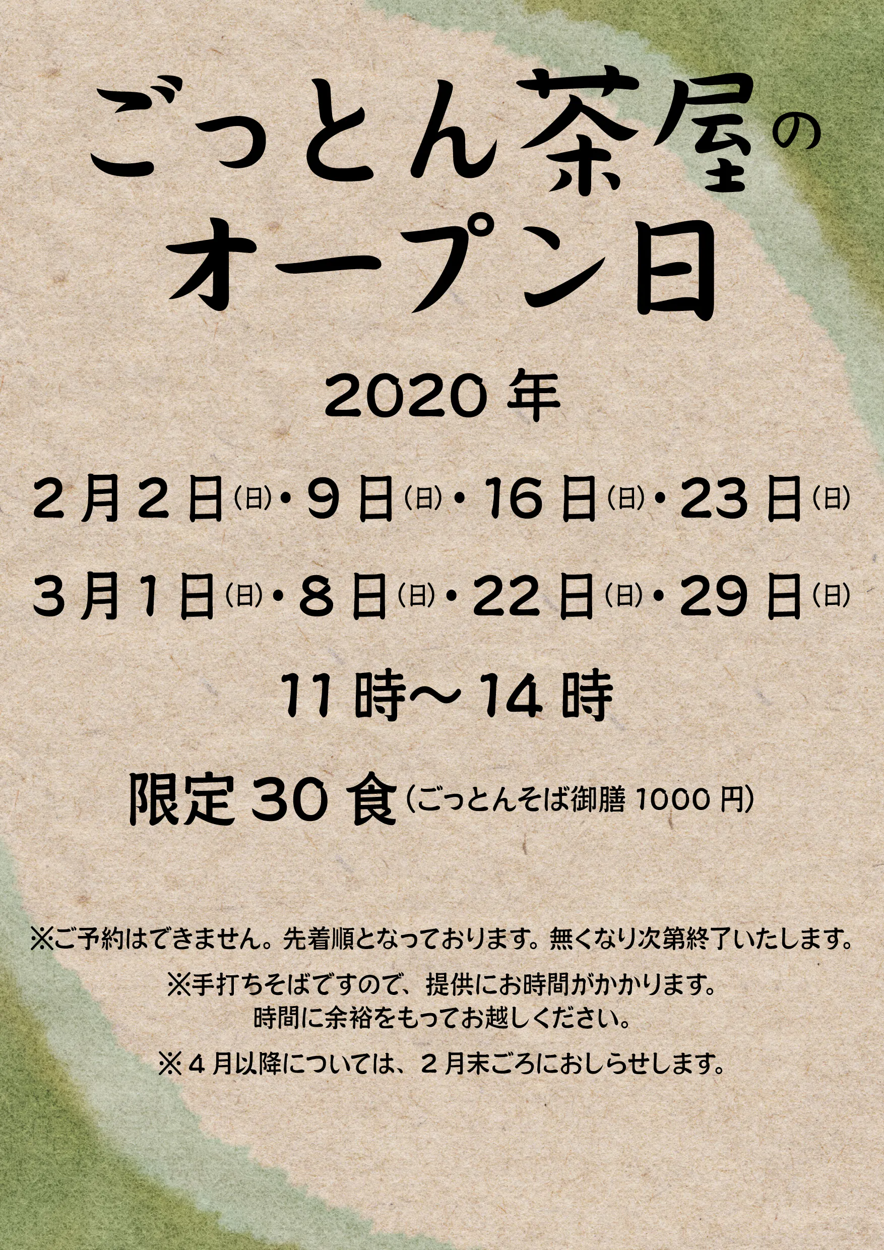 「ごっとん茶屋」2〜3月の営業日