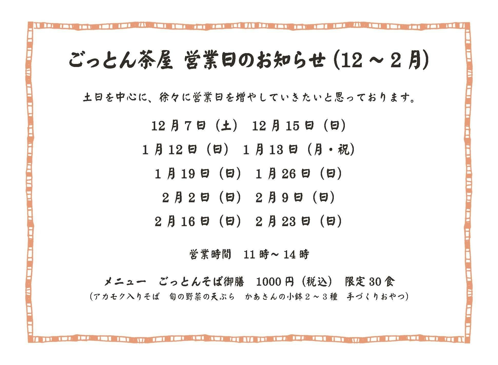 さて、今月から2月までの営業日が決まりました。