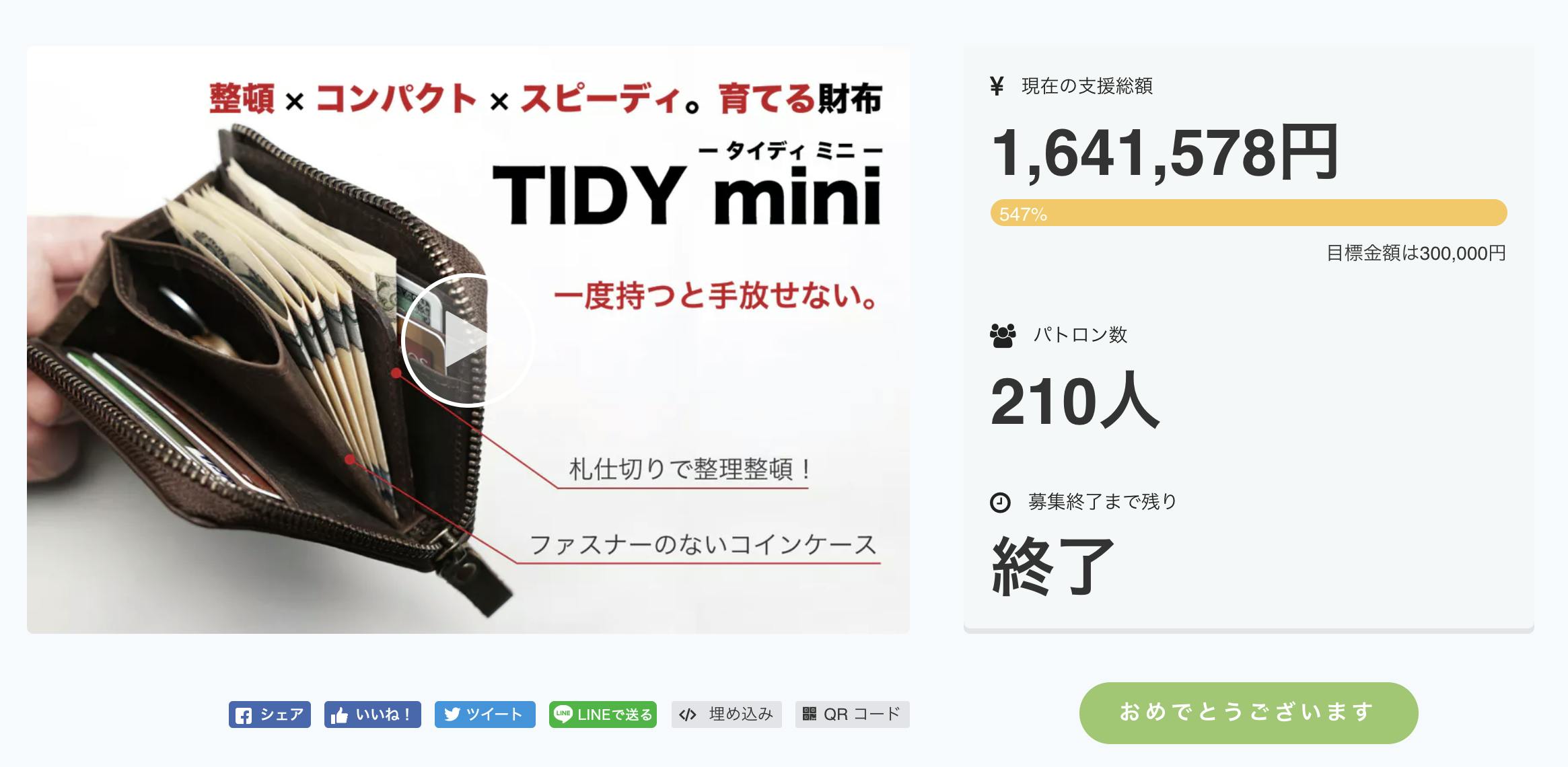 【ご支援頂いた人数、210人】