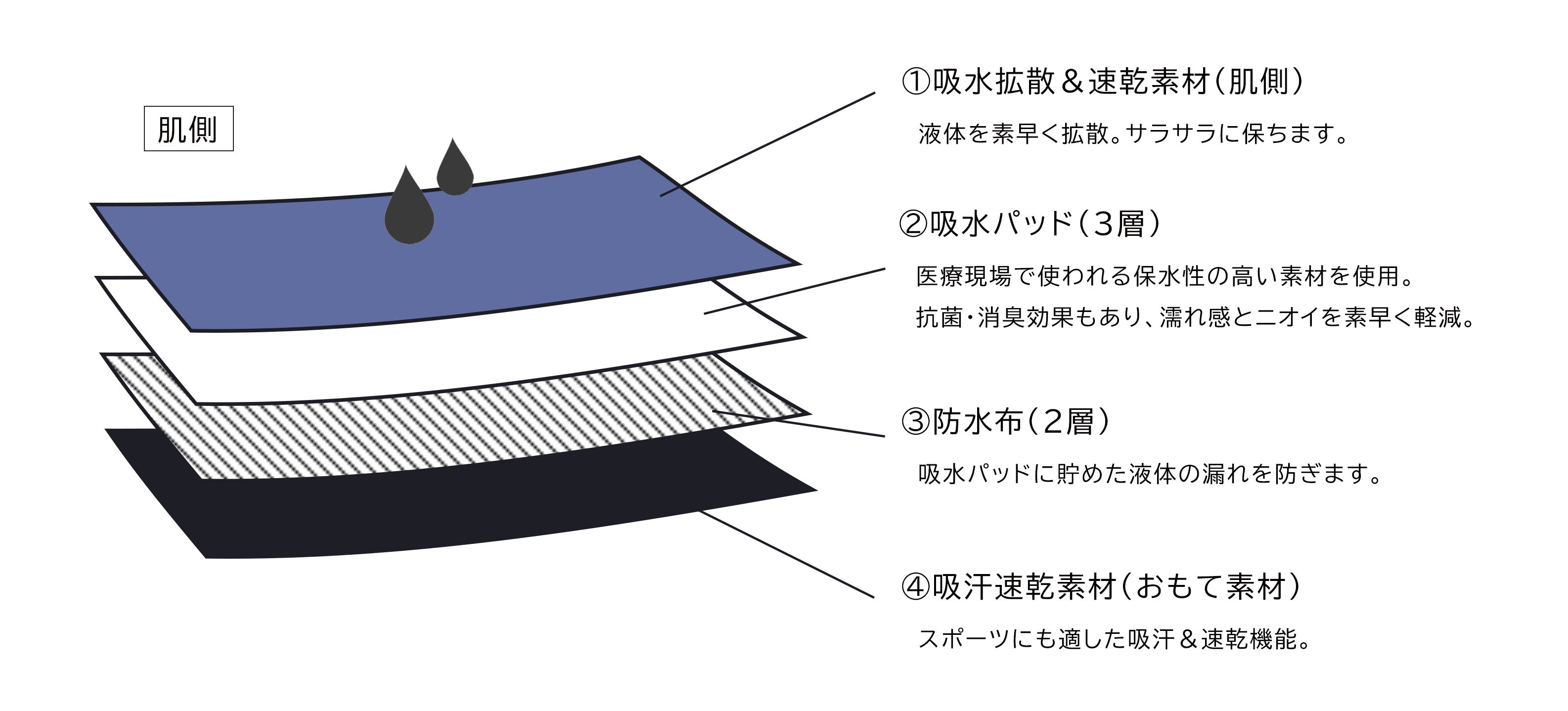 「PlayS」は吸水素材に手術や災害時の止水材としても使われる「超吸水性」&「多少の圧力を加えても離水しない機能」の繊維を使用することで、濡れ戻り感をなくし抜群のサラサラ感を実現。