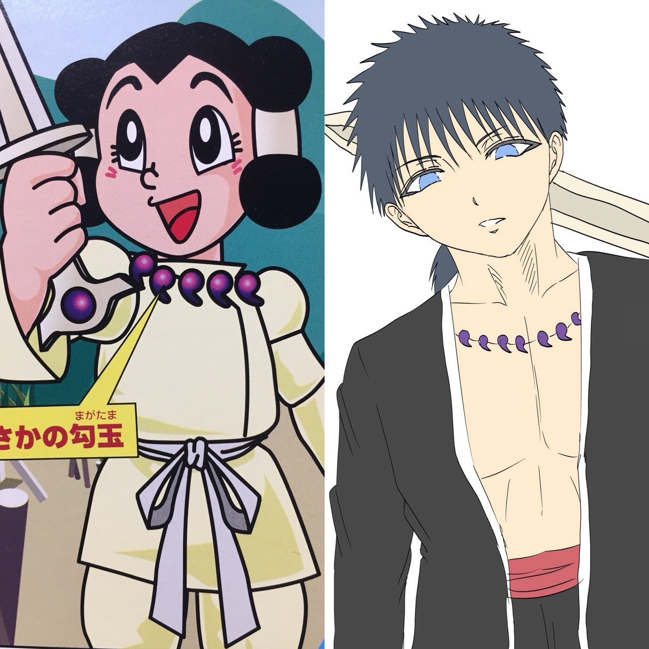 しかし従来のタケルの古代日本人というイメージは損なわないよう、髪は後ろで小さく結わせ、勾玉【まがたま】や剣といった装飾品はアレンジをあまり加えずデザインしています。