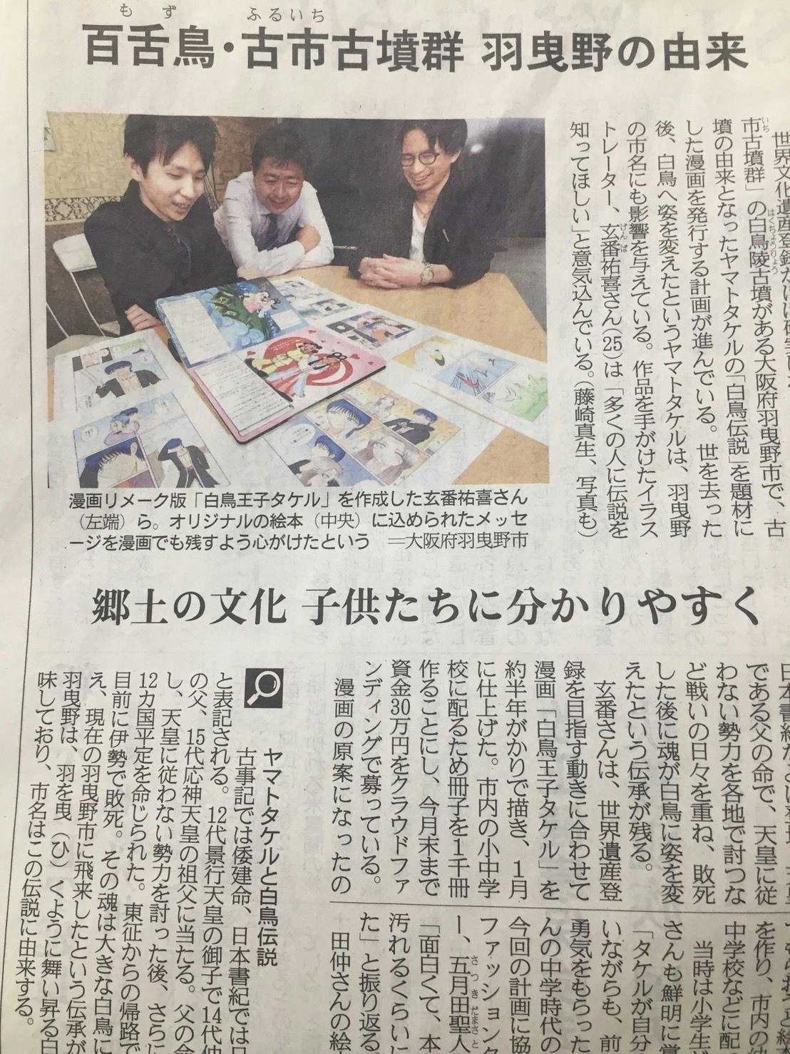 産経新聞において『白鳥伝説ヤマトタケル』漫画化プロジェクトの内容が掲載されました。