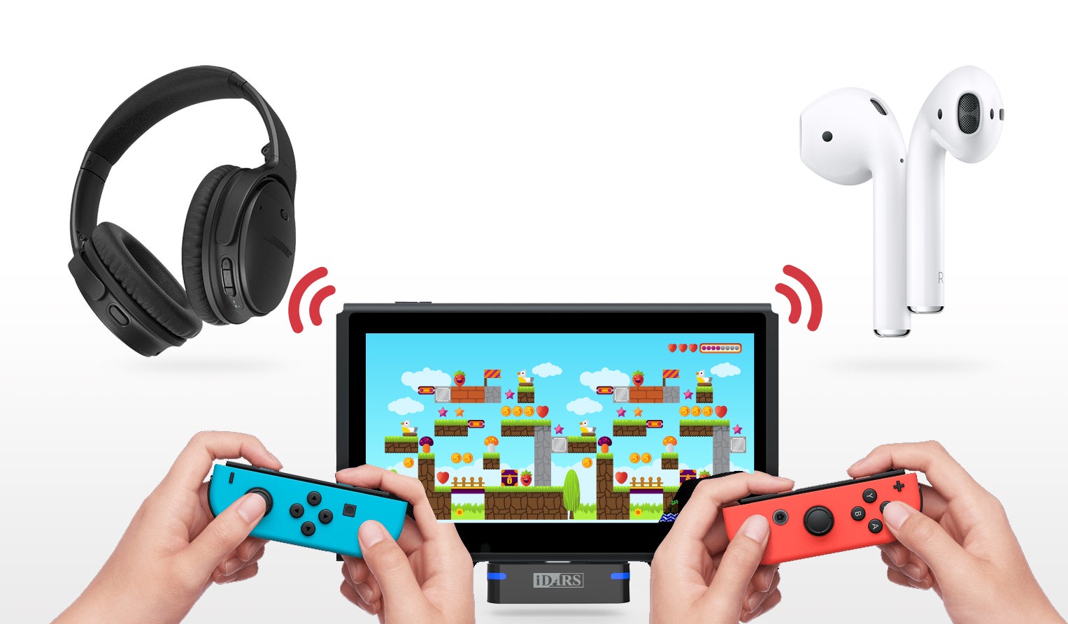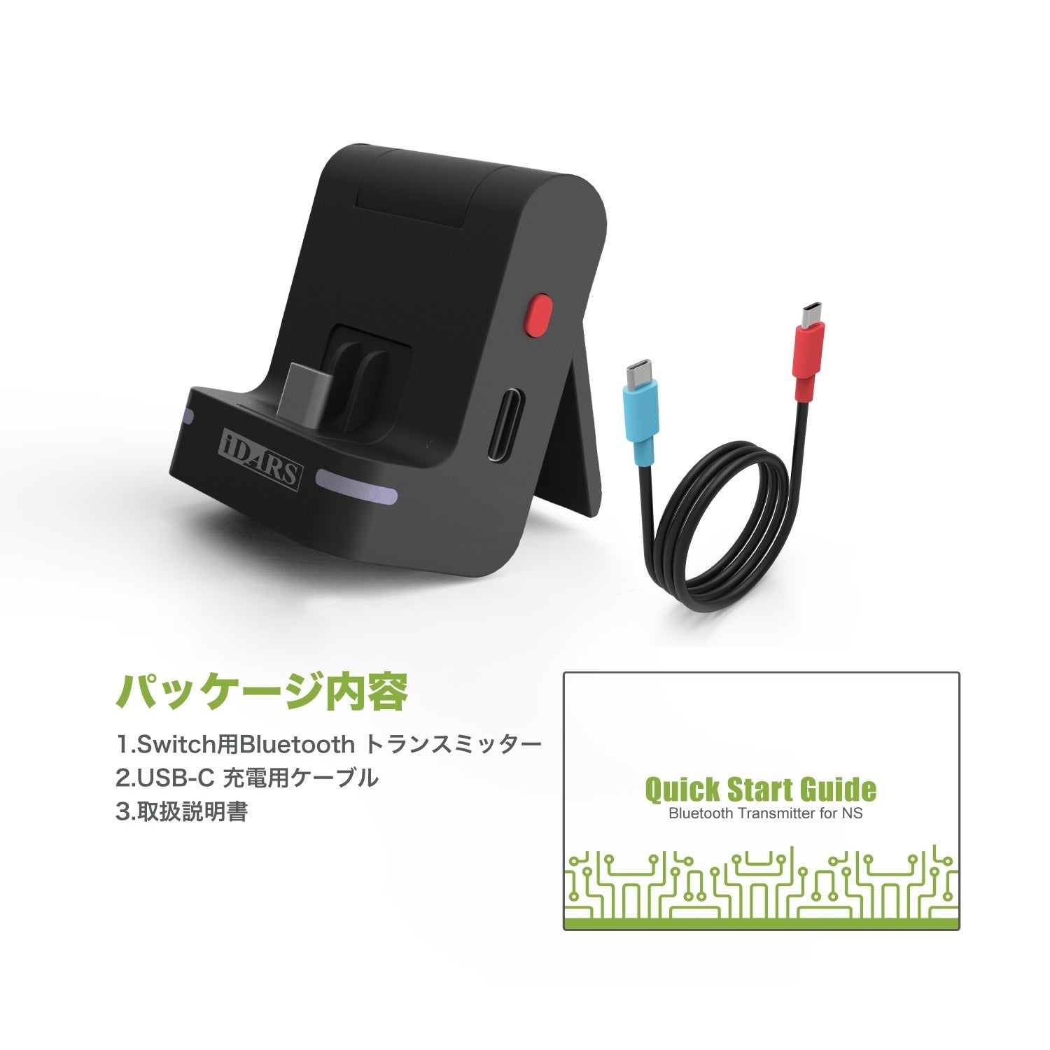 iDARS TOMOON: 3-in-1 Nintendo Switch™ スタンド機能付きBluetoothトランスミッター