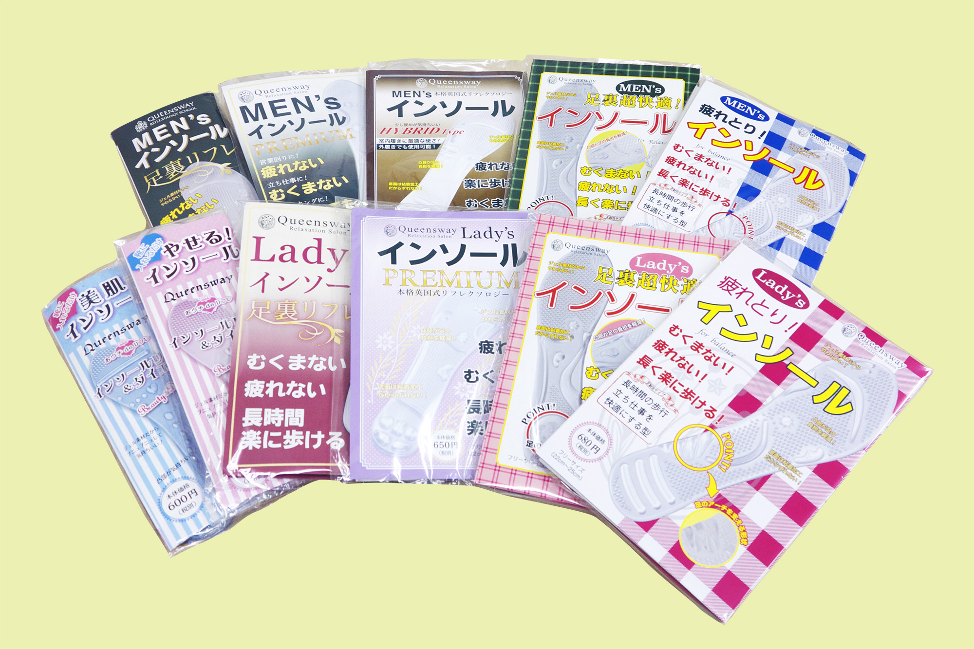 インソールシリーズは全て、全国にサロンを展開する「クイーンズウェイ」様の監修により制作されています。素材から形状にこだわって企画・制作されたインソールで、ぜひ足裏リフレクソロジーの世界をご体感下さい。