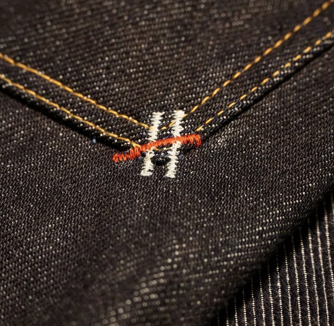そんな経験から、ジーンズの右側バックポケットには3本線で「X」のステッチをあしらいました。