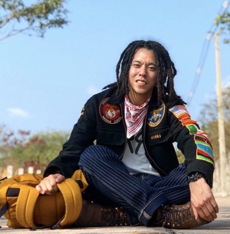 その後世界30か国以上を周遊。1年間のイギリス留学を経て、豊田通商(株)に入社。10か月で退職。GHION DENIM立ち上げ。