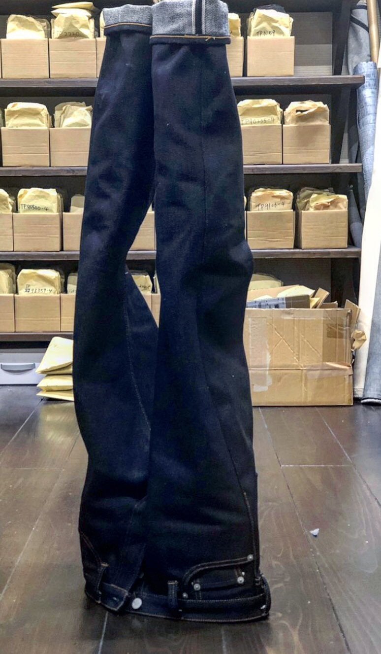 一般的にジーンズに使われる生地というのは11~14オンス程度。普段皆さんが”このジーンズごわごわするな”と思って穿いているものでもせいぜい13~14オンスといったところでしょう。