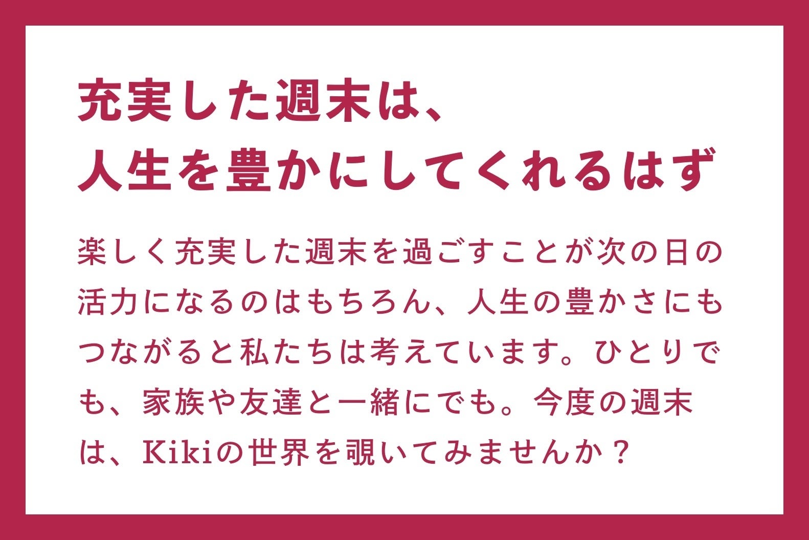 Kikiは「私たちは、週末をもっと楽しむことができるのでは?」という想いから始まりました。