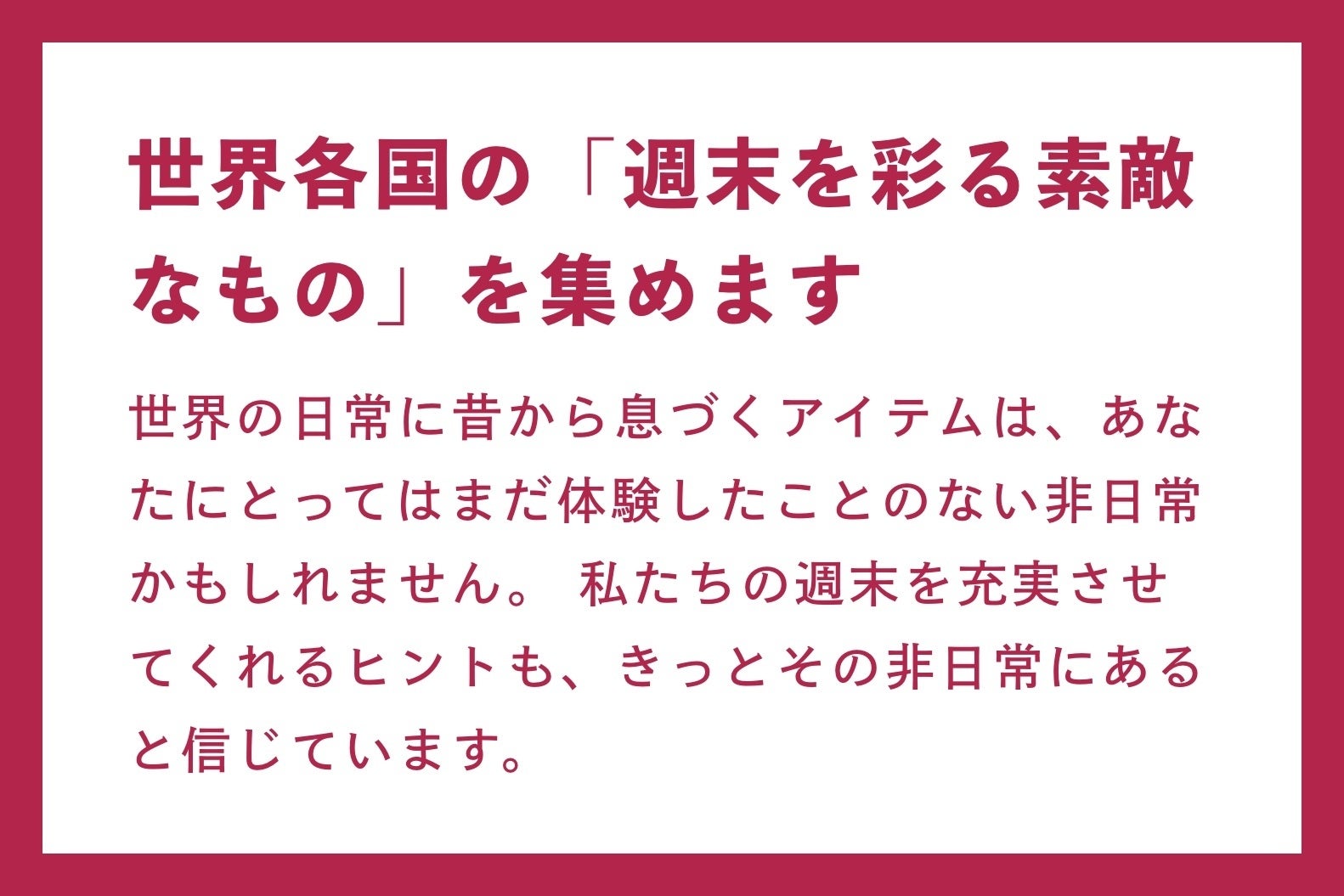 世界の日常に息づく素敵なアイテムで非日常をお届けすれば、週末をもっと楽しんでもらえるかもしれない
